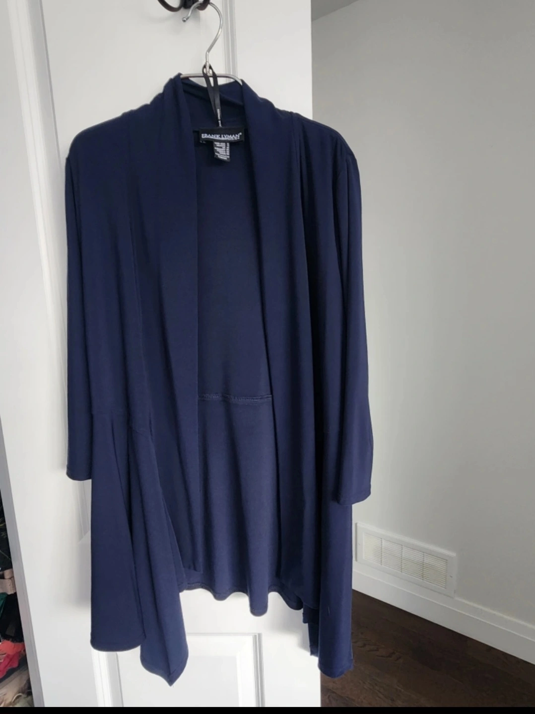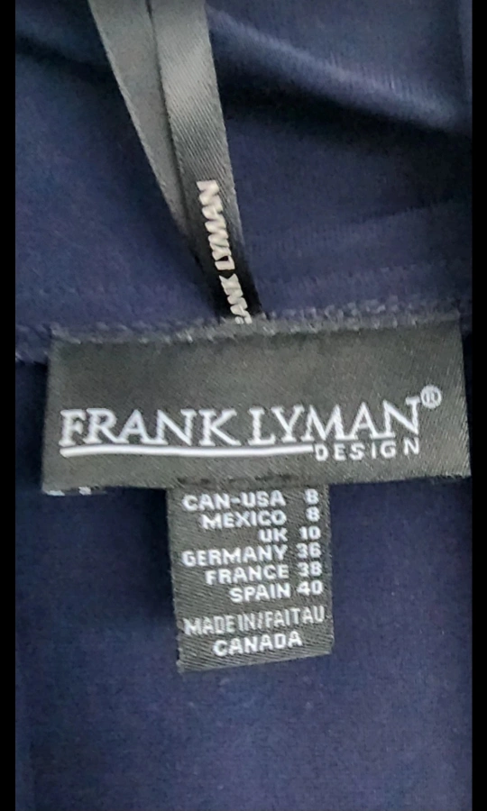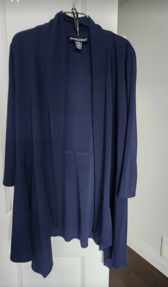 A stylish navy cardigan from Frank Lyman Design, size 8. It's in great condition and ready for a new home!