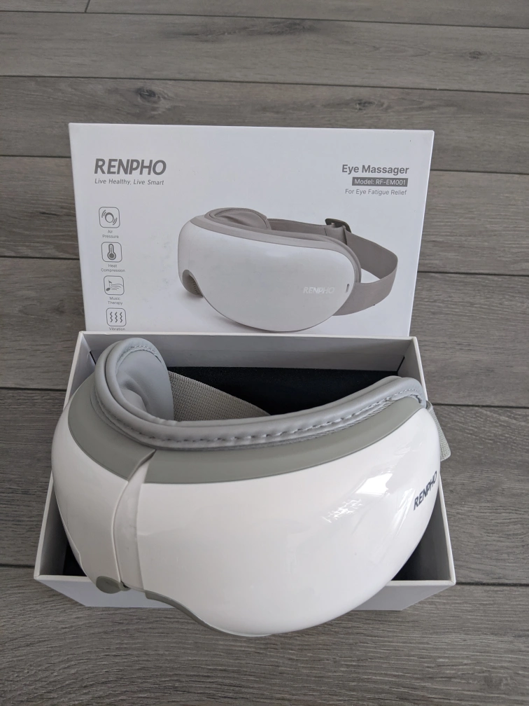 Relax and rejuvenate with the RENPHO Eye Massager! This gently used eye massager, uses heat and pressure to relieve eye fatigue, improve sleep, and reduce puffiness. It's in excellent condition and comes with original box.
