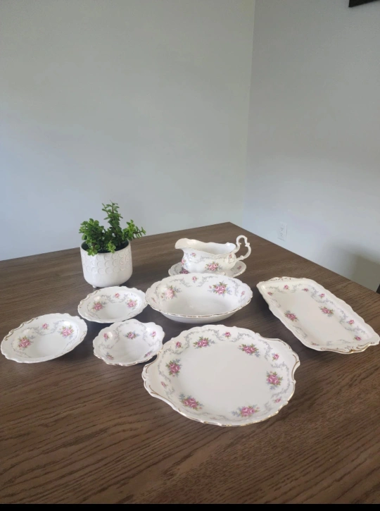 Selling a beautiful Royal Albert Bone China set in the Tranquillity pattern. This elegant set would be a lovely addition to any collection or a special occasion dinnerware. The set appears to be in great condition!