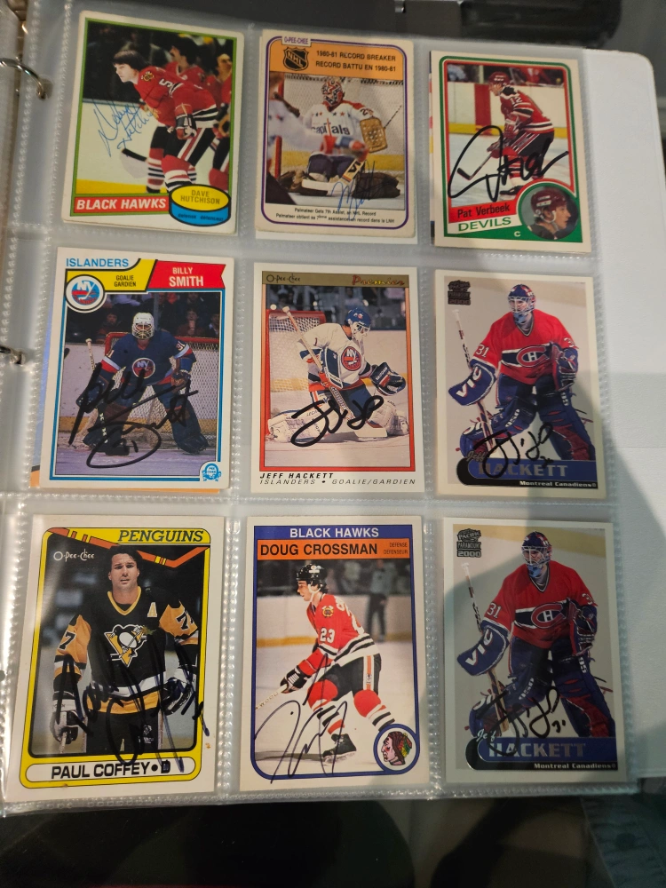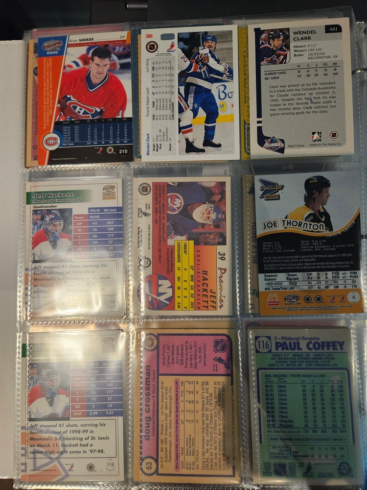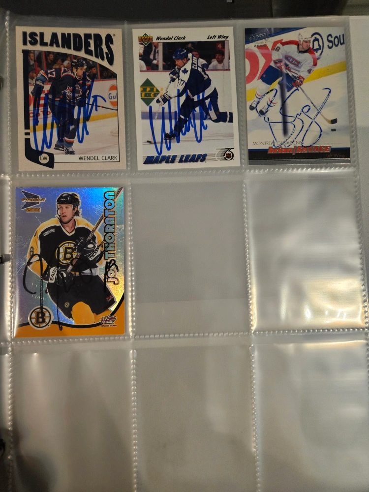 Selling a collection of signed NHL hockey trading cards! The cards feature various players and teams, including Wendel Clark, Maple Leafs, and Montreal Canadiens. Great for any hockey fan or collector! etransfer.