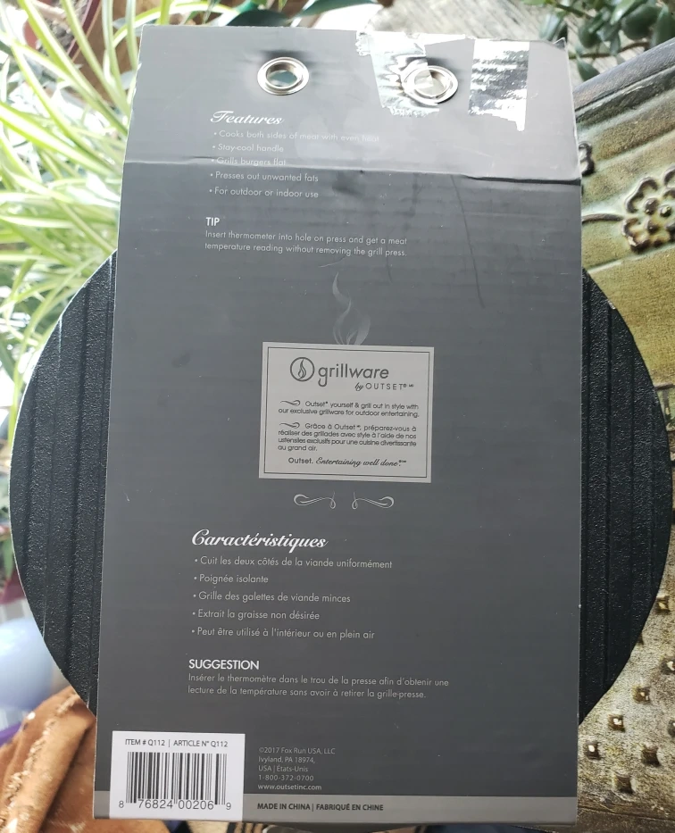 For Sale: Outset Grillware Round Cast Iron Grill Press!