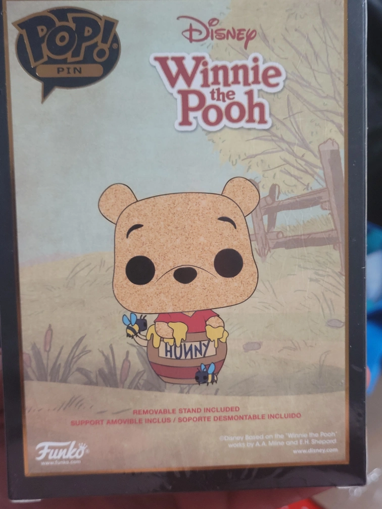 I'm selling a brand new, in box Funko Pop! Pin of Disney's Winnie the Pooh. This is the "Winnie in Honey Pot" enamel pin, a BoxLunch Exclusive. It also includes a removable stand!