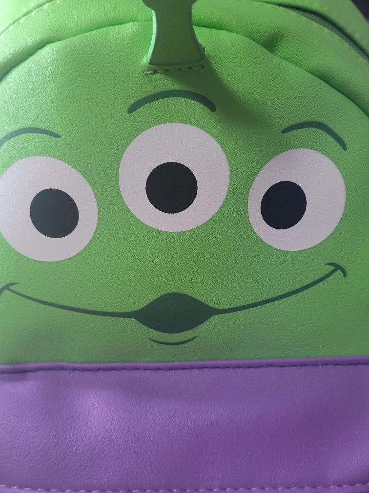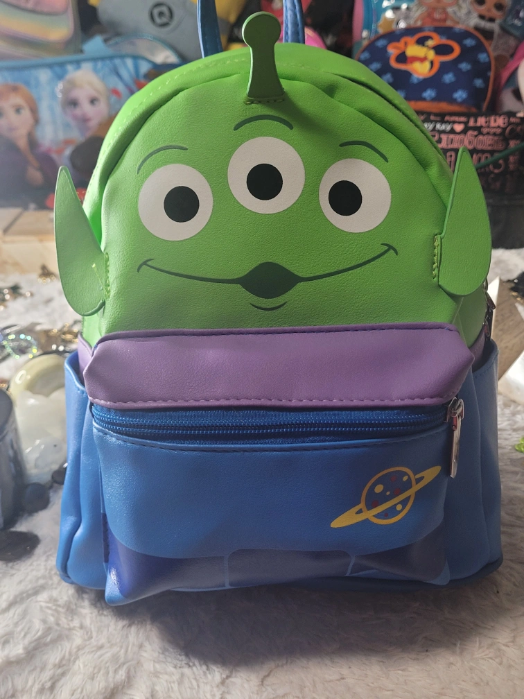 Cute Disney Toy Story Alien mini backpack in excellent condition! Features the adorable three-eyed alien design with vibrant green, purple, and blue colours. Perfect for any Disney or Toy Story fan!