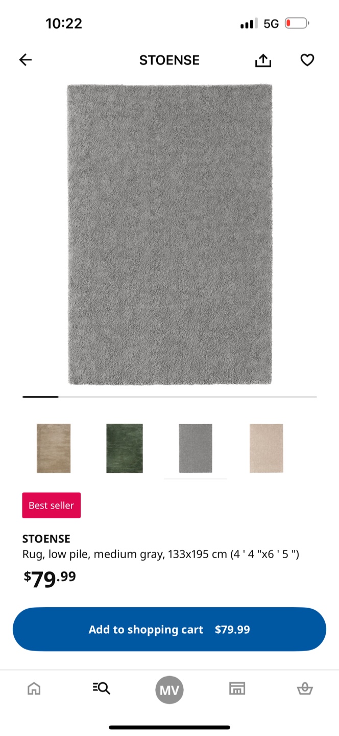 1 / 21 / 2Buy & SellIKEA STOENSE Rug - Low Pile, Medium Gray, 4'4" x 6'5"IKEA STOENSE Rug - Low Pile, Medium Gray, 4'4" x 6'5"$30Selling a STOENSE rug from IKEA in medium gray! It's a low pile rug and measures 133x195 cm (4' 4" x 6' 5") in good conditionWHERE TO MEETSt. Anthony Catholic SchoolView MapSELLERverifiedManishaDovercourt1459 reviews0 chats·0 favorites·54 viewsSEND CHAT TO SELLERHi Manisha! I’m interested in your listing.Hi Manisha! I’m interested in your listing.Get the Karrot app to chatSign In to chat