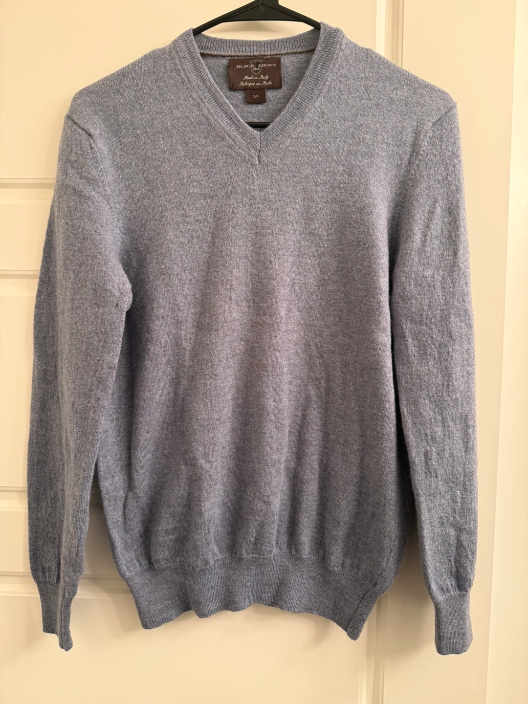 Selling a Black Brown 1826 sweater that was made in Italy. It's a size small and features a V-neck design. The sweater is a light blue colour and is in great condition!