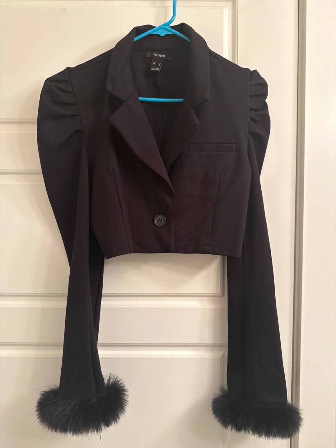 Selling a cute Forever 21 cropped blazer in black! It's a size medium and in great condition. Perfect for adding a stylish touch to any outfit