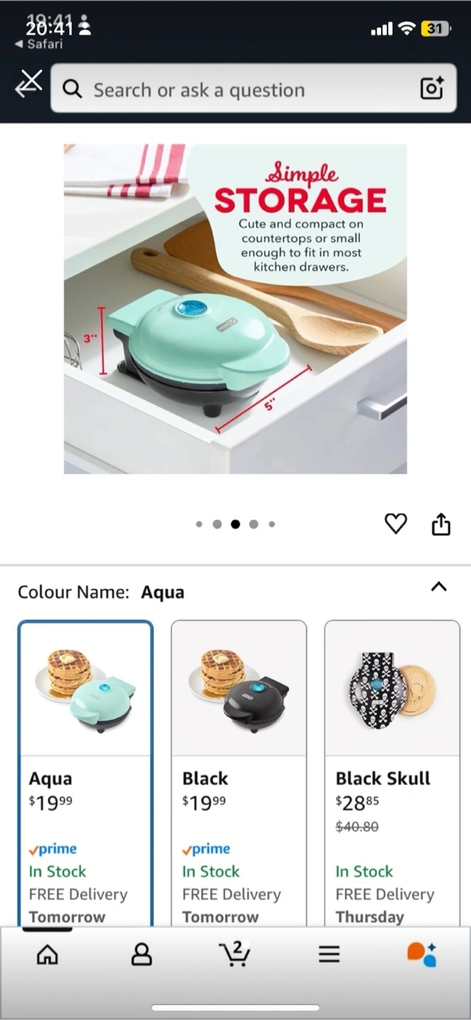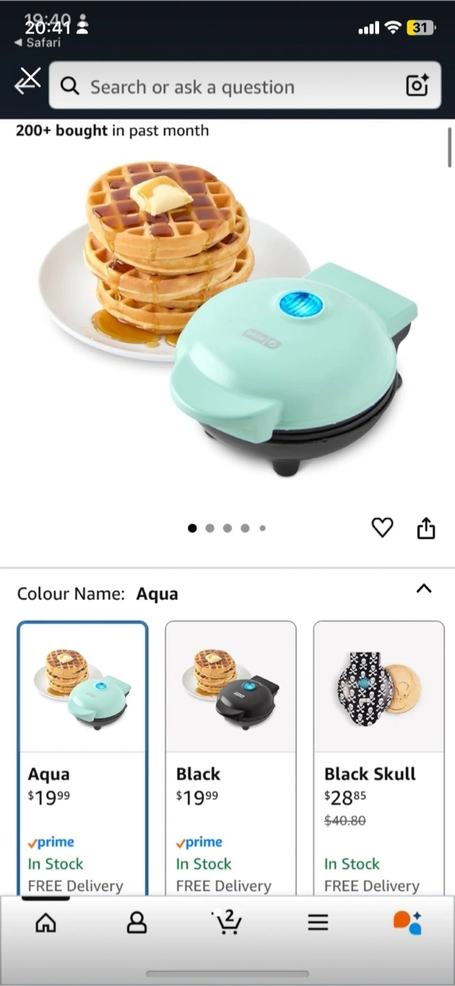 I'm selling a Mini Waffle Maker in aqua! It's cute and compact, perfect for countertops or small enough to fit in most kitchen drawers. It's designed for simple storage. Originally bought for $19.99! Used once :)