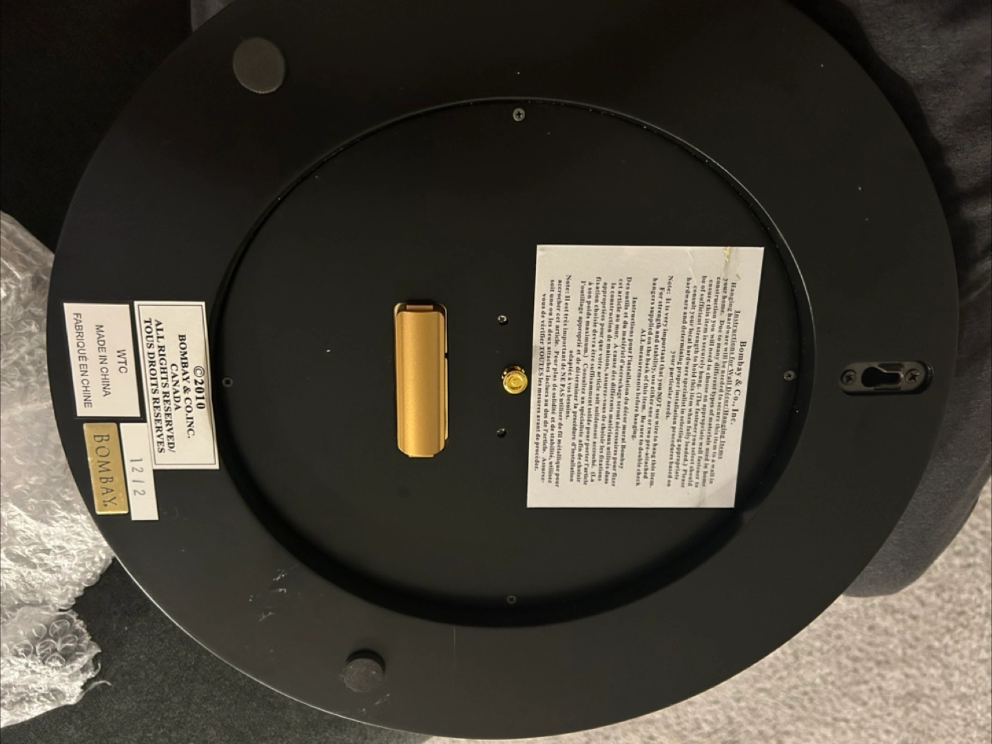 Bombay & Co. wall clock in good condition. It has a beautiful design with gold accents and a black frame. Perfect for adding a touch of elegance to any room
