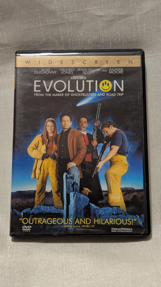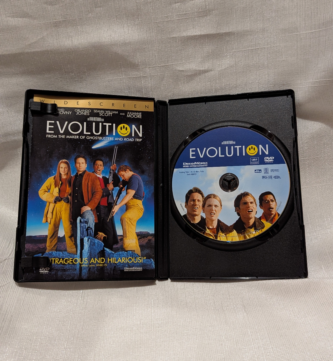 Selling the DVD of the movie Evolution. A comedy about aliens and saving the world! A fun movie for a night in.