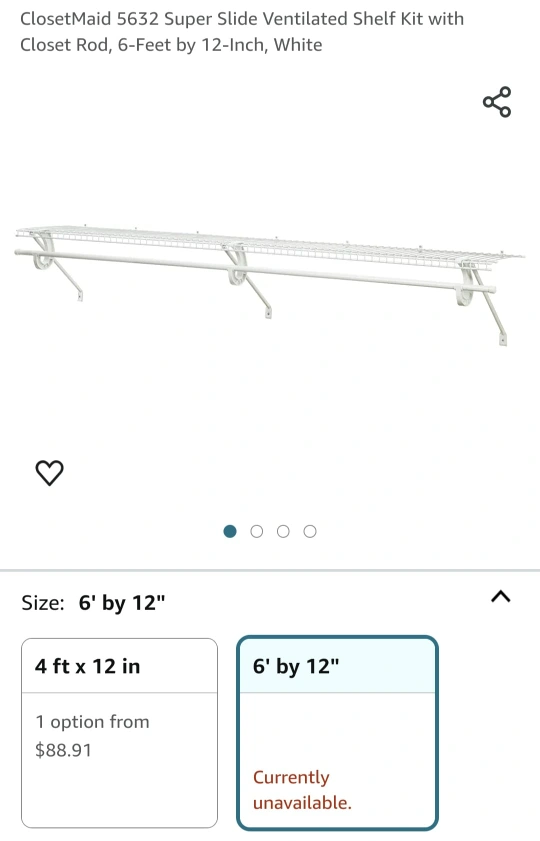 I'm selling a ClosetMaid 5632 Super Slide Ventilated Shelf Kit, still in its original packaging! It's 6 feet long. This is a great way to organize your closet or add extra storage space to any room