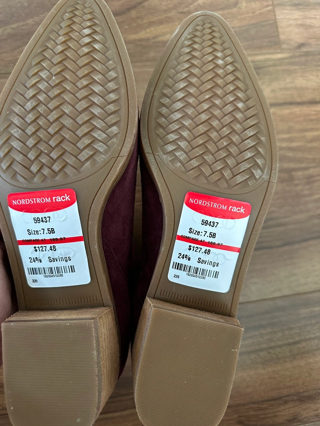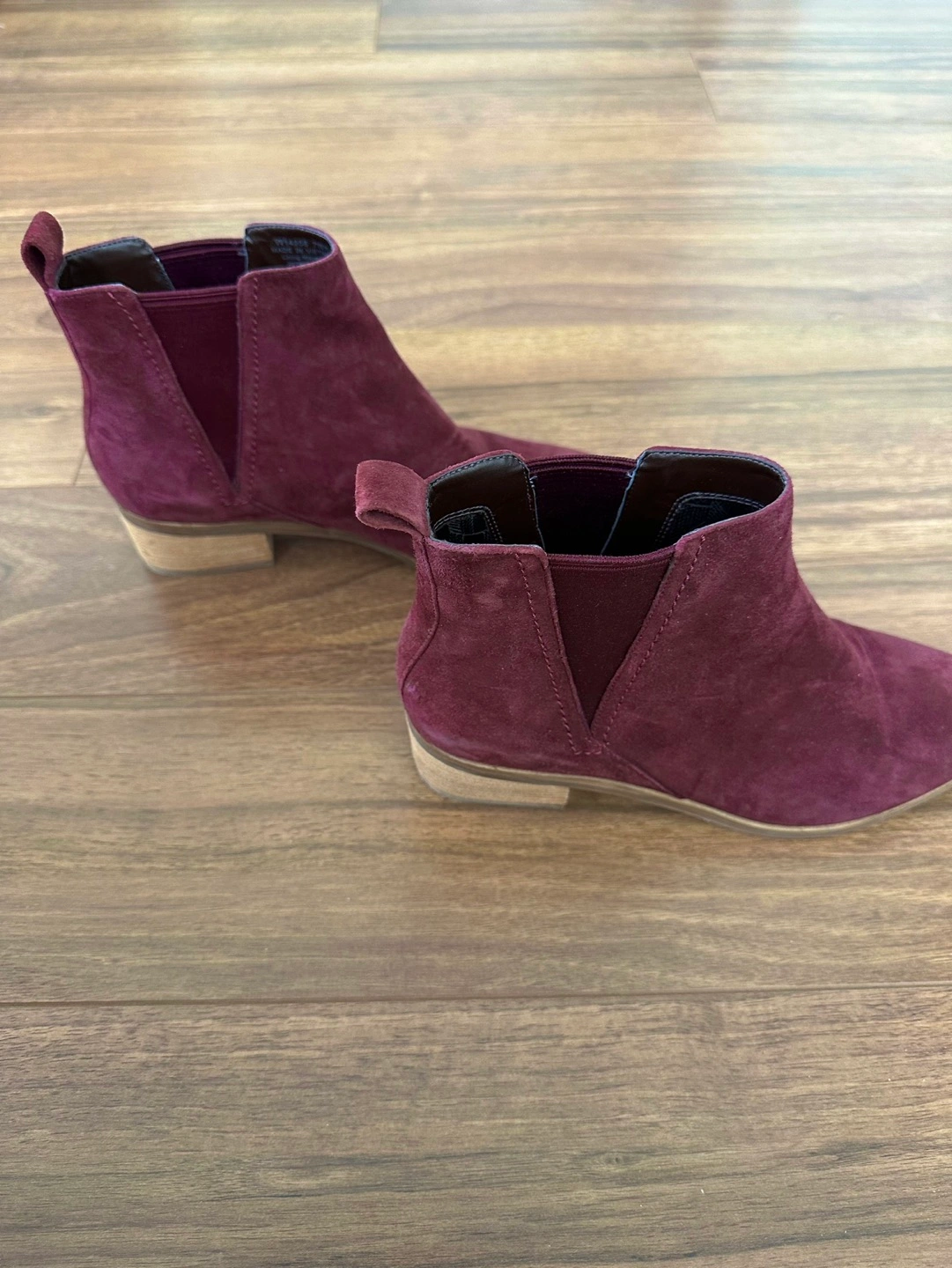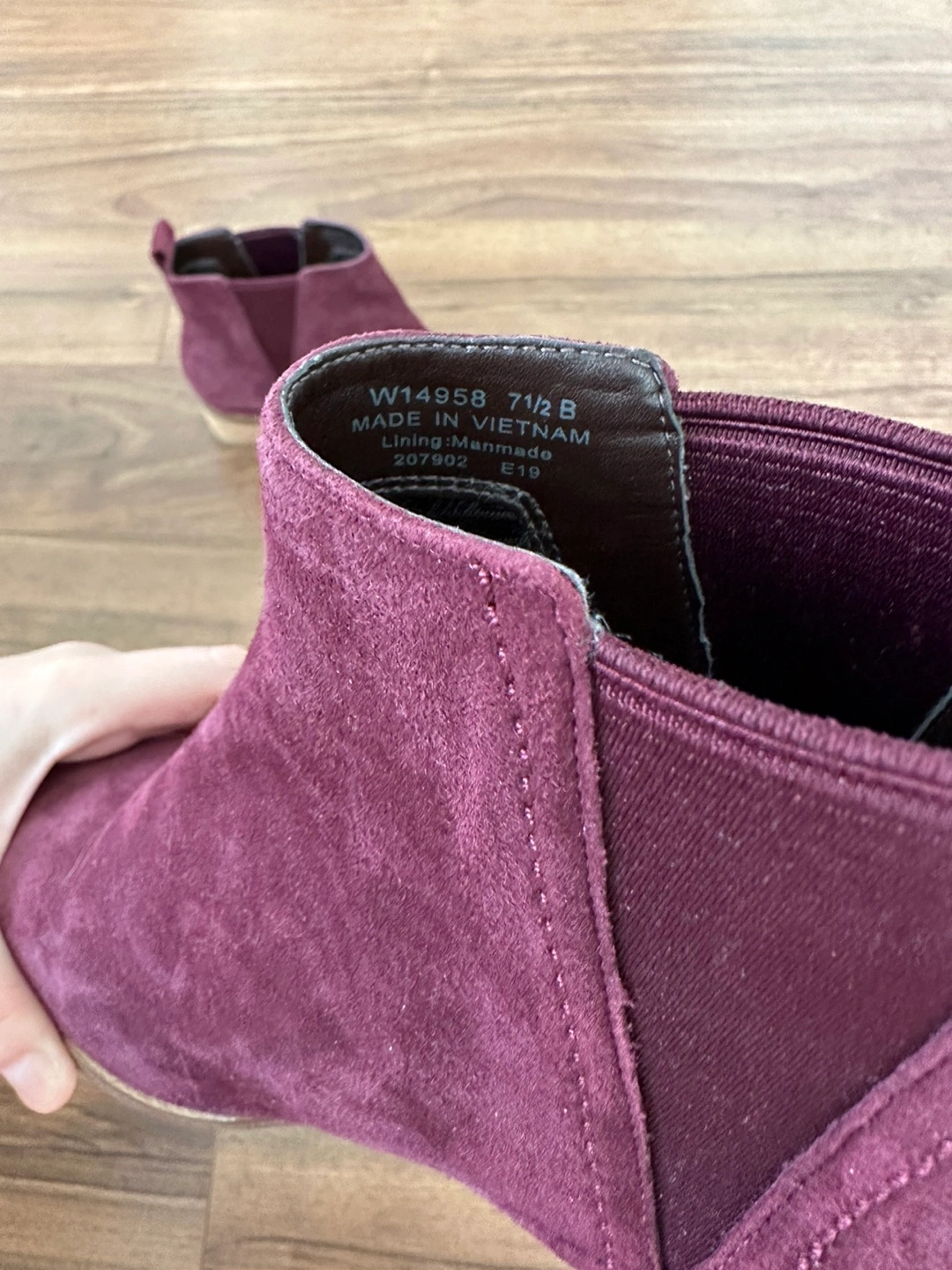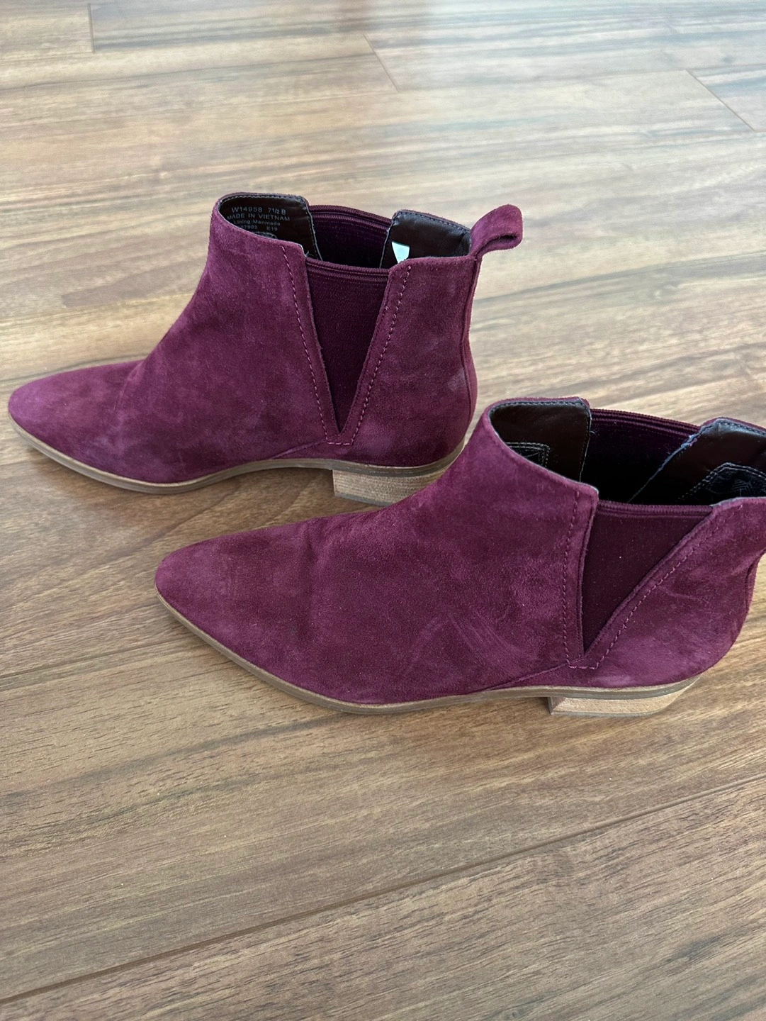 Brand new, never been worn (without box) Cole Haan women's suede Marinne Ankle Bootie in colour "wine tasting". Size 7.5. Colour most resembles the stock photos!