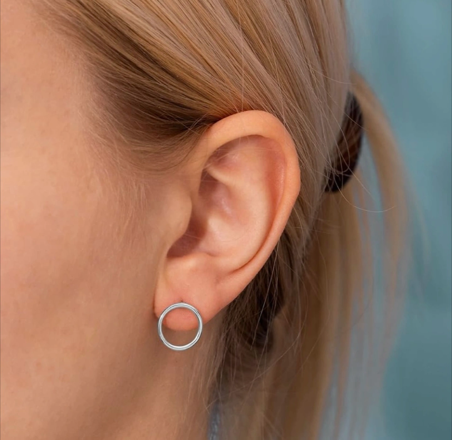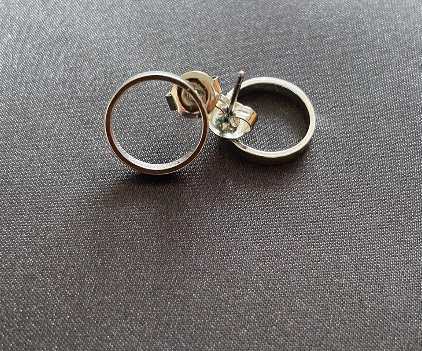 Selling a pair of silver circle stud earrings.
