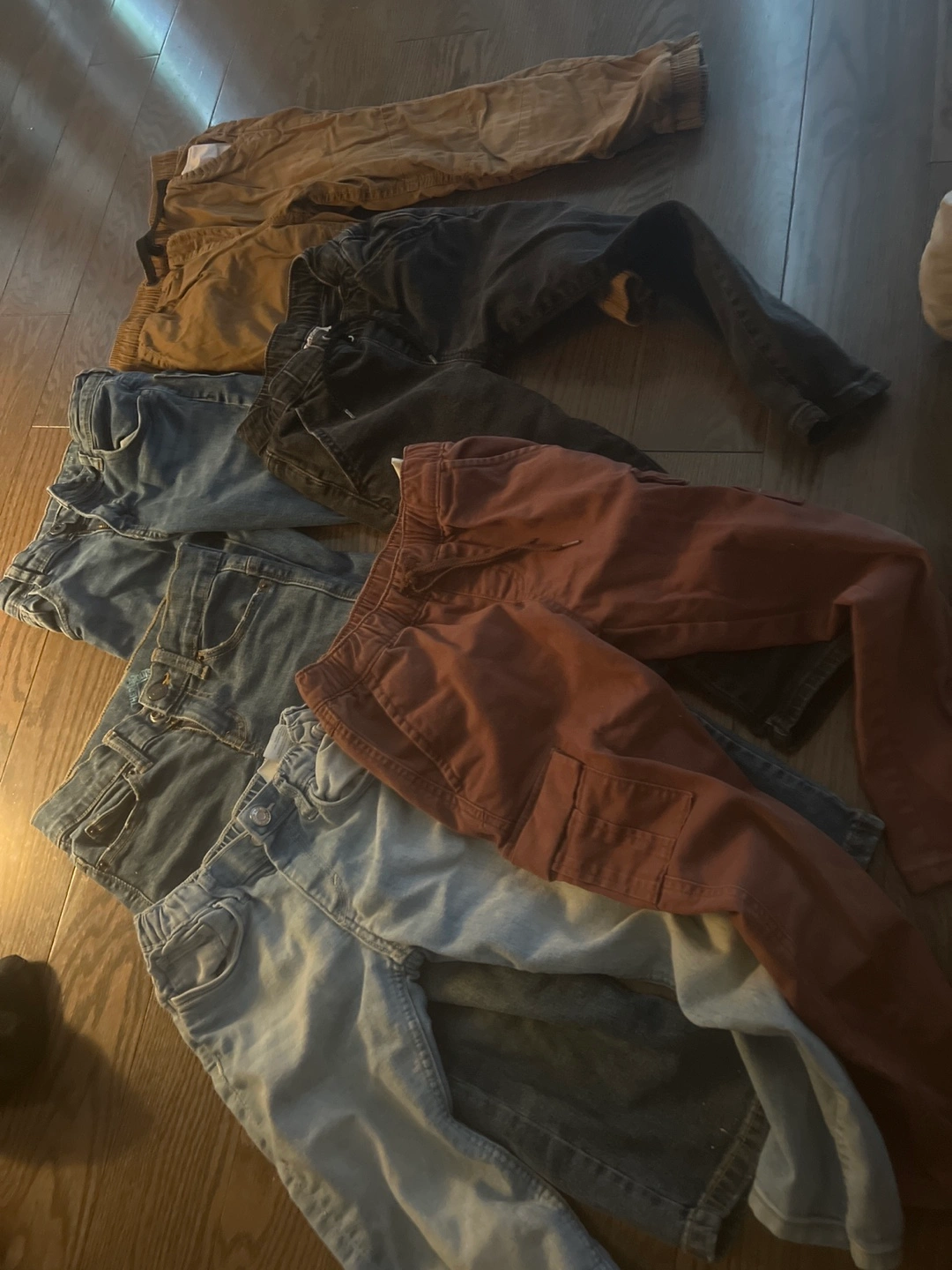 bundle of boys' pants in various styles and colours! There are denim jeans, cargo pants and more. Great for everyday wear! From 4 to 6 years