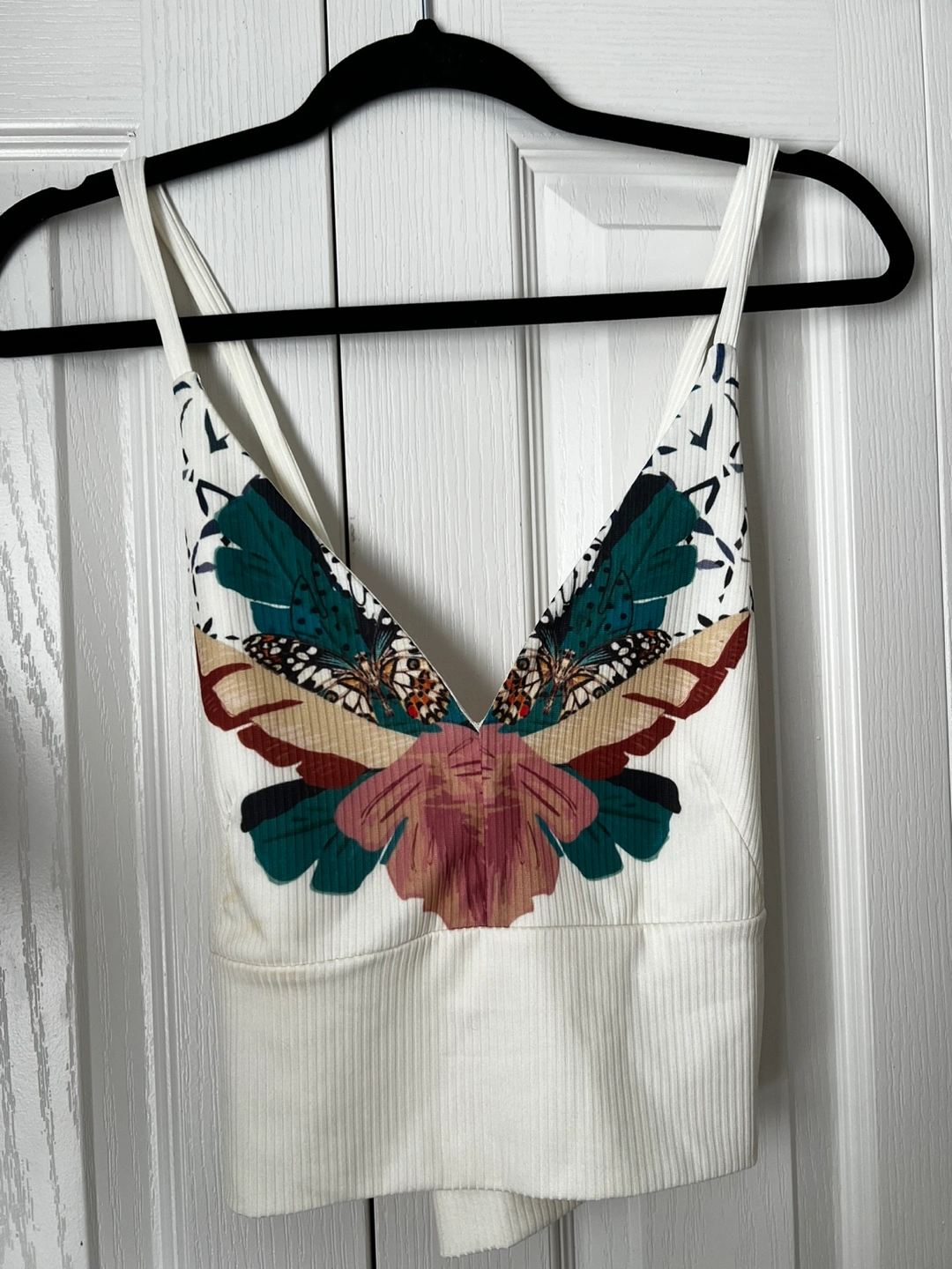 Selling a Butterfly Effect Brami. The brami is off white with a butterfly design on the front. It's in great condition and ready for a new home!