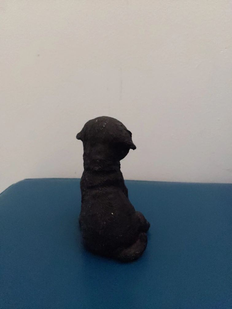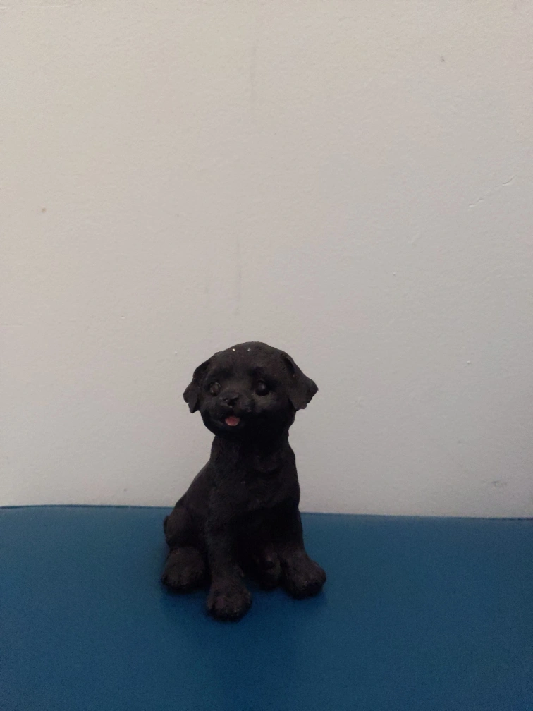 A cute little black dog figurine, perfect for adding a touch of charm to any space.