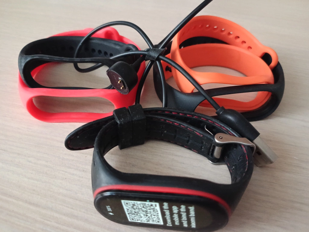 - 2 original Xiaomi straps (orange and black pair in photo)