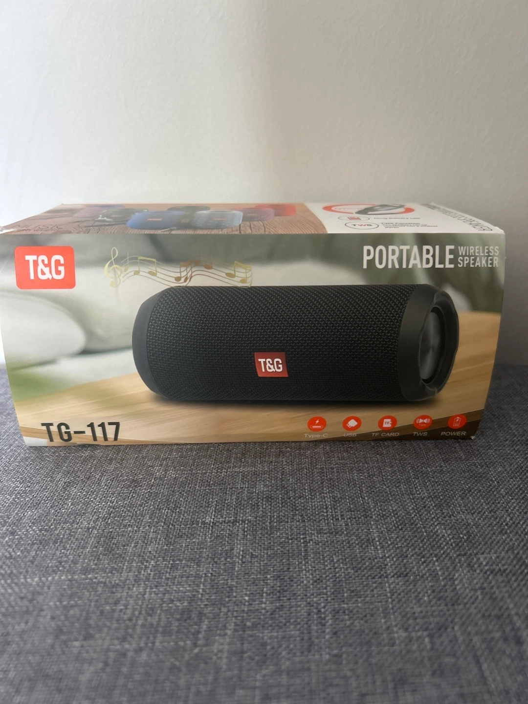 Selling a T&G TG-117 portable wireless speaker! It comes in its original box, ready for a new home. This speaker is perfect for on-the-go tunes, with its compact design and wireless connectivity