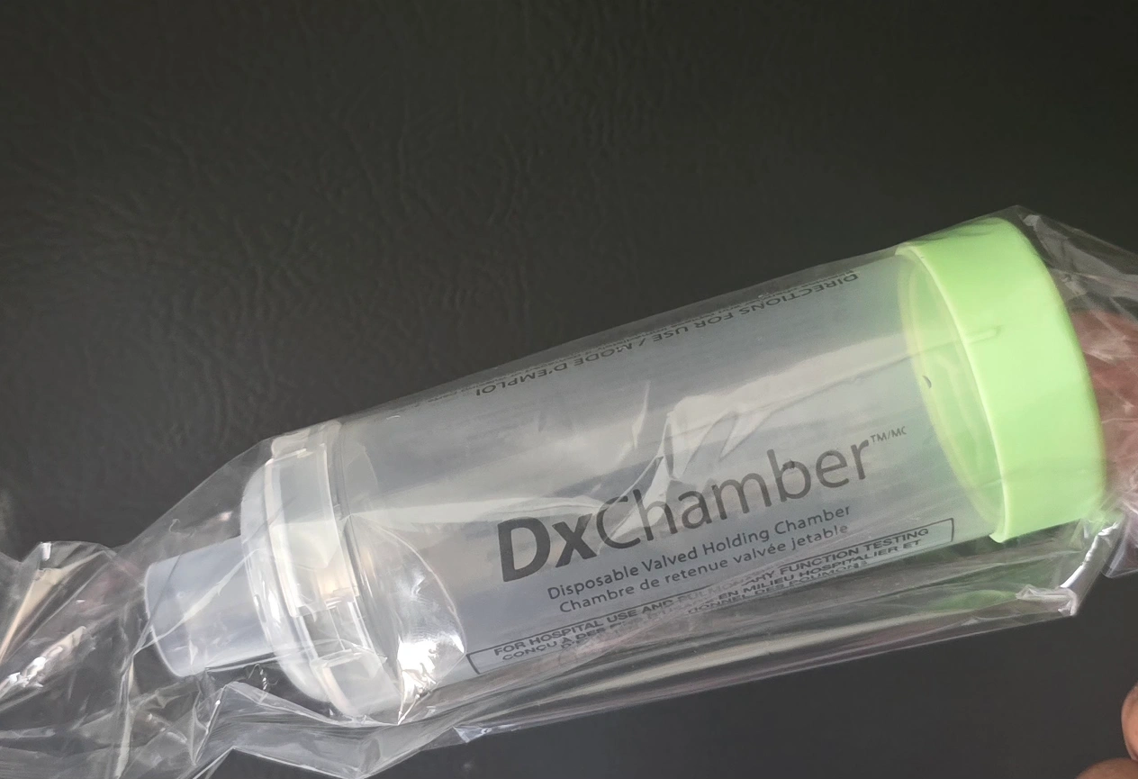 Selling a new DxChamber disposable valved holding chamber! This chamber is designed for hospital and home use, ensuring effective aerosol delivery. It's still sealed in its original packaging
