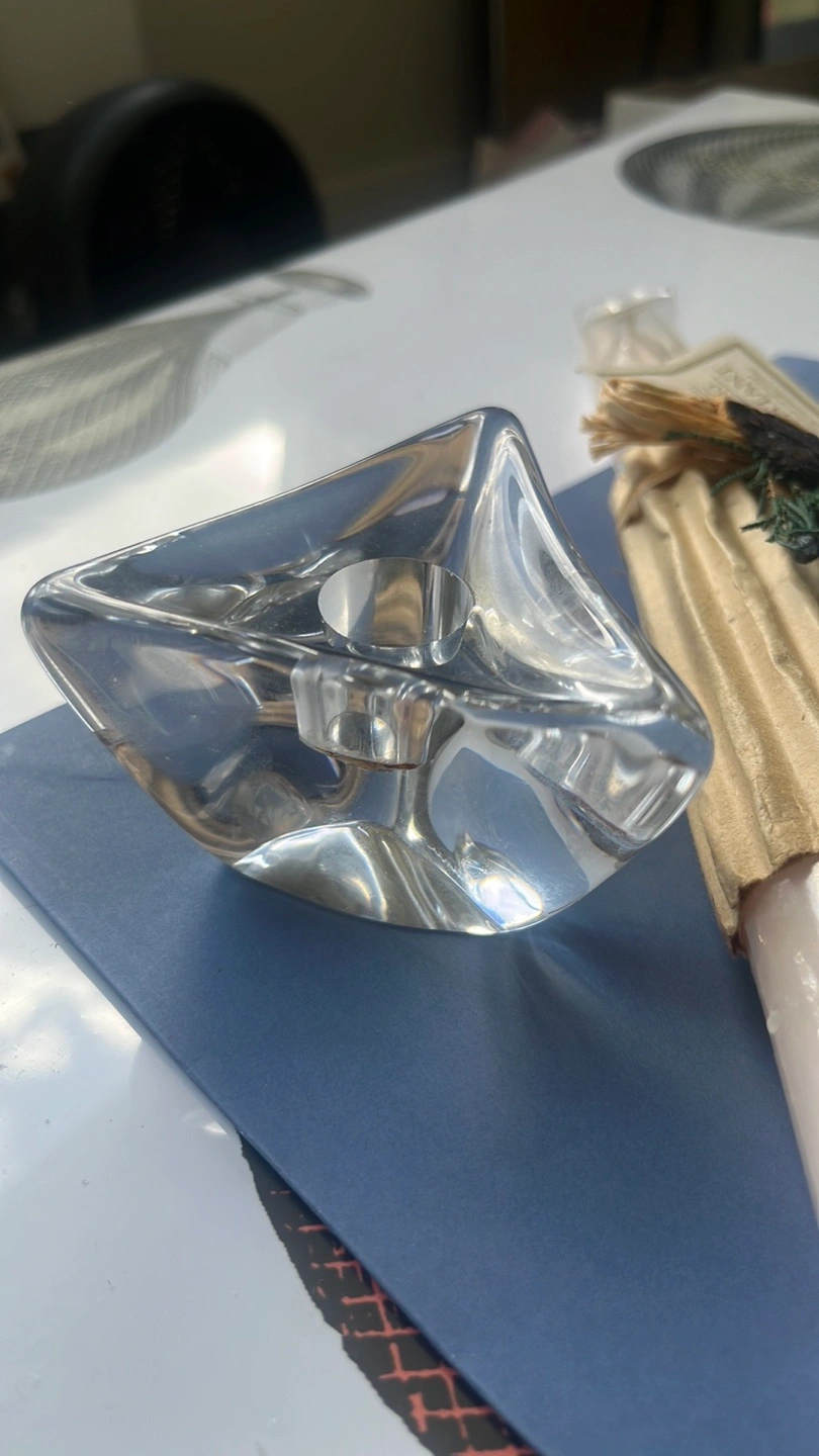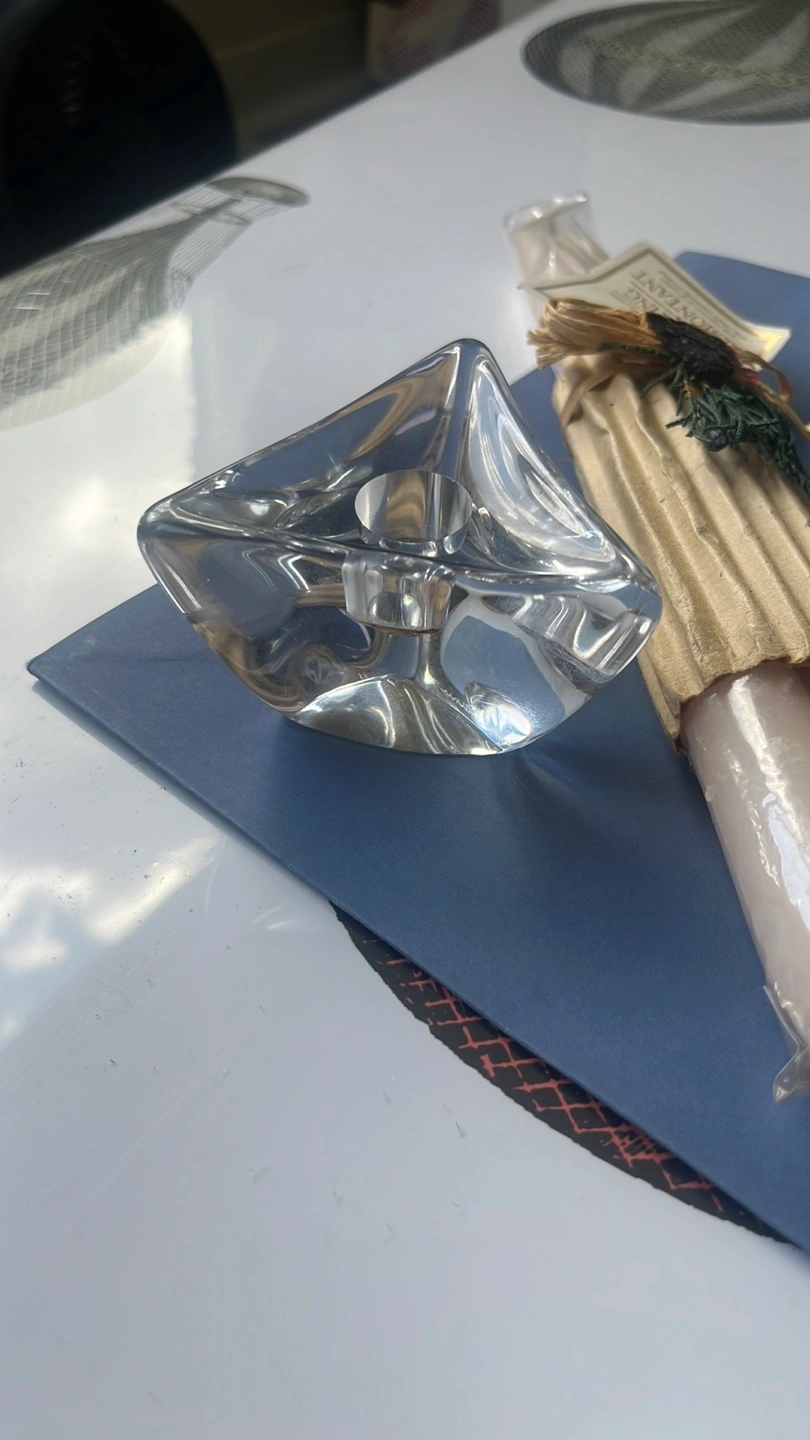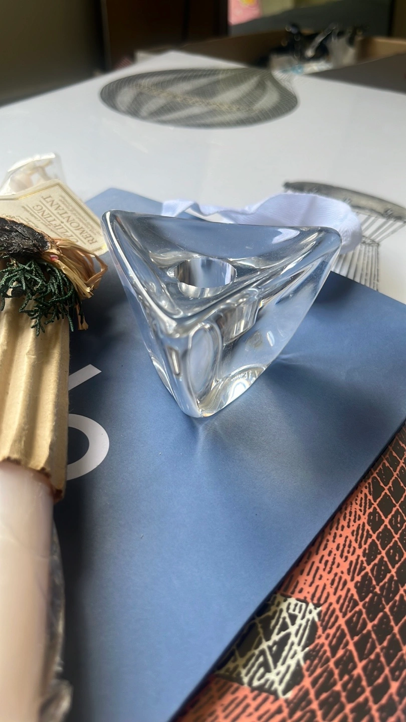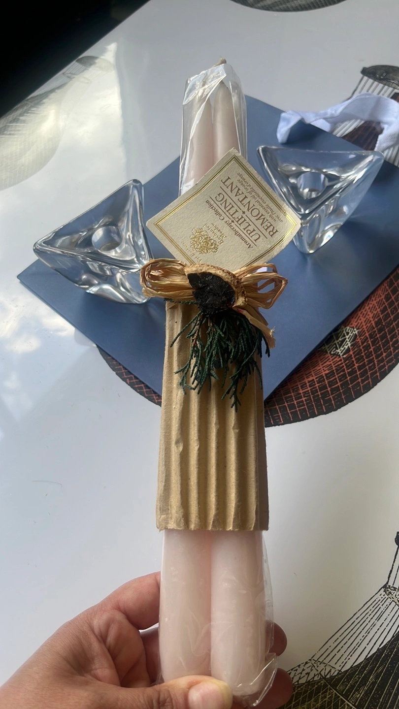 I'm selling a set that includes an Uplifting Remontant candle and two clear glass candle holders. The candle is still in its original packaging, making it a lovely addition to any room or a thoughtful gift for someone special