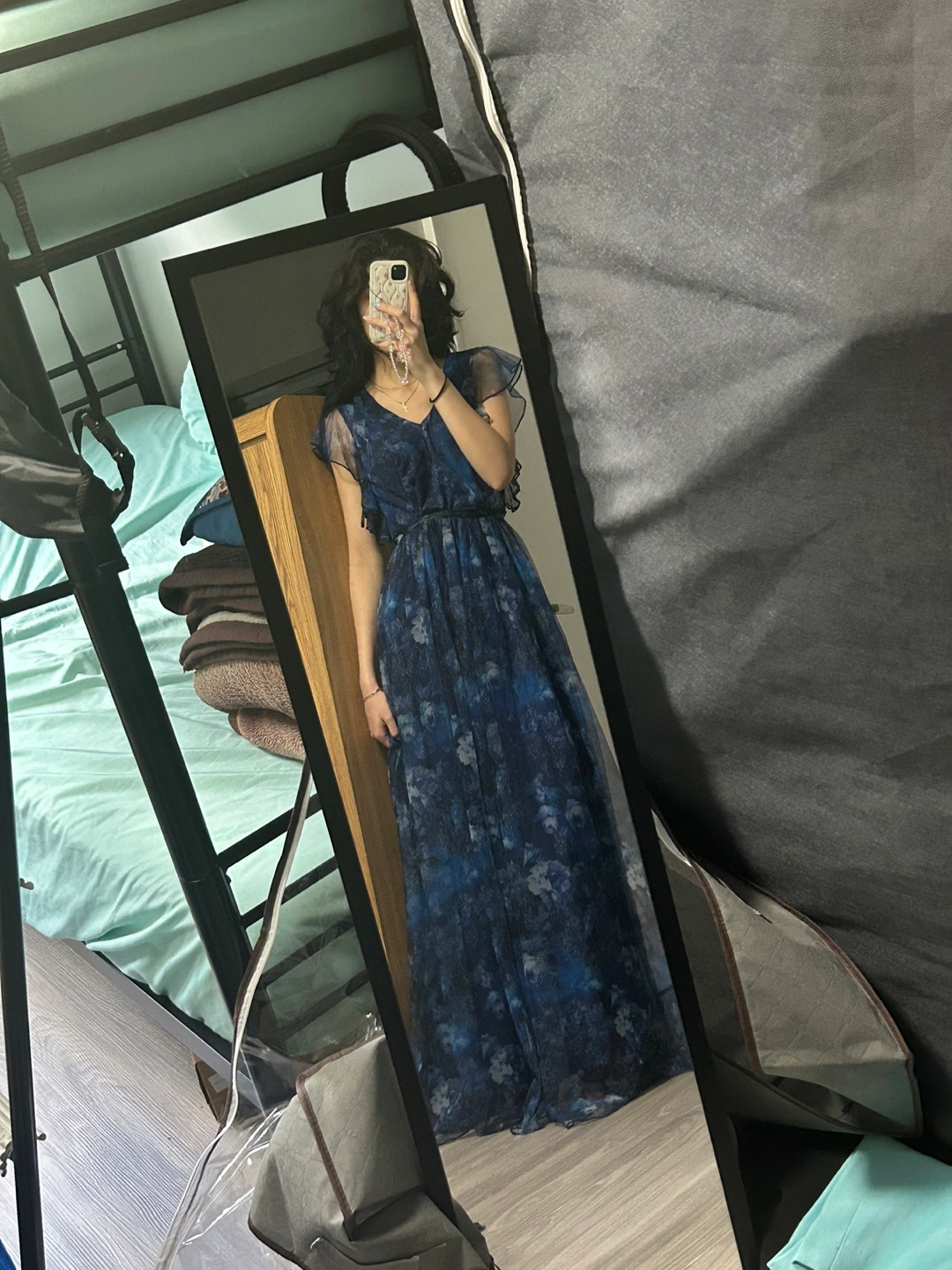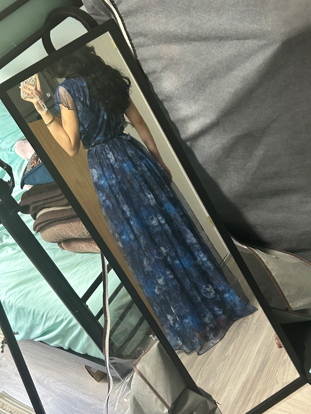 Selling a lovely floral print maxi dress! It features a flattering silhouette and a beautiful blue floral pattern. Perfect for a special occasion or a stylish everyday look