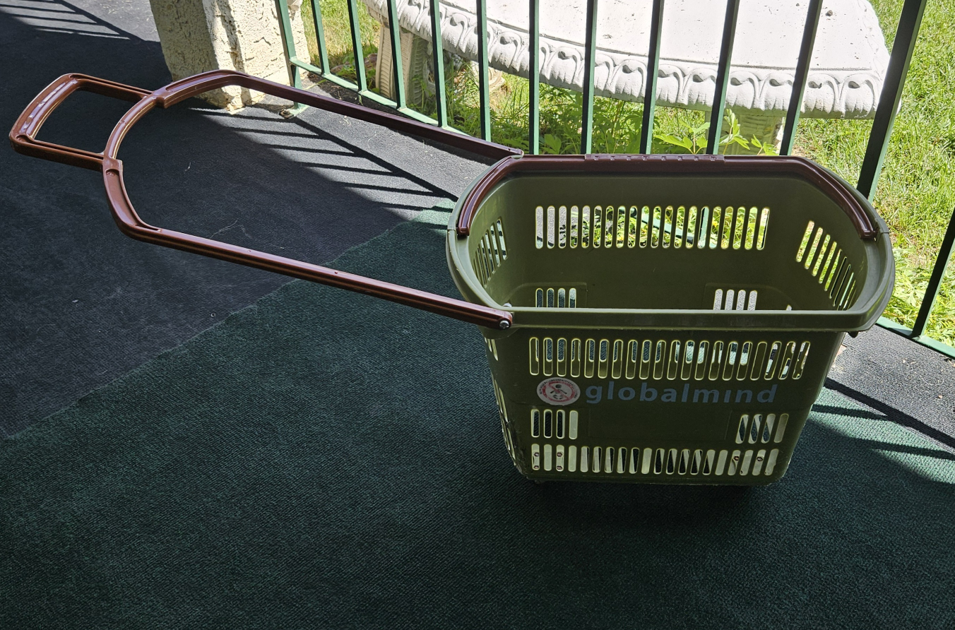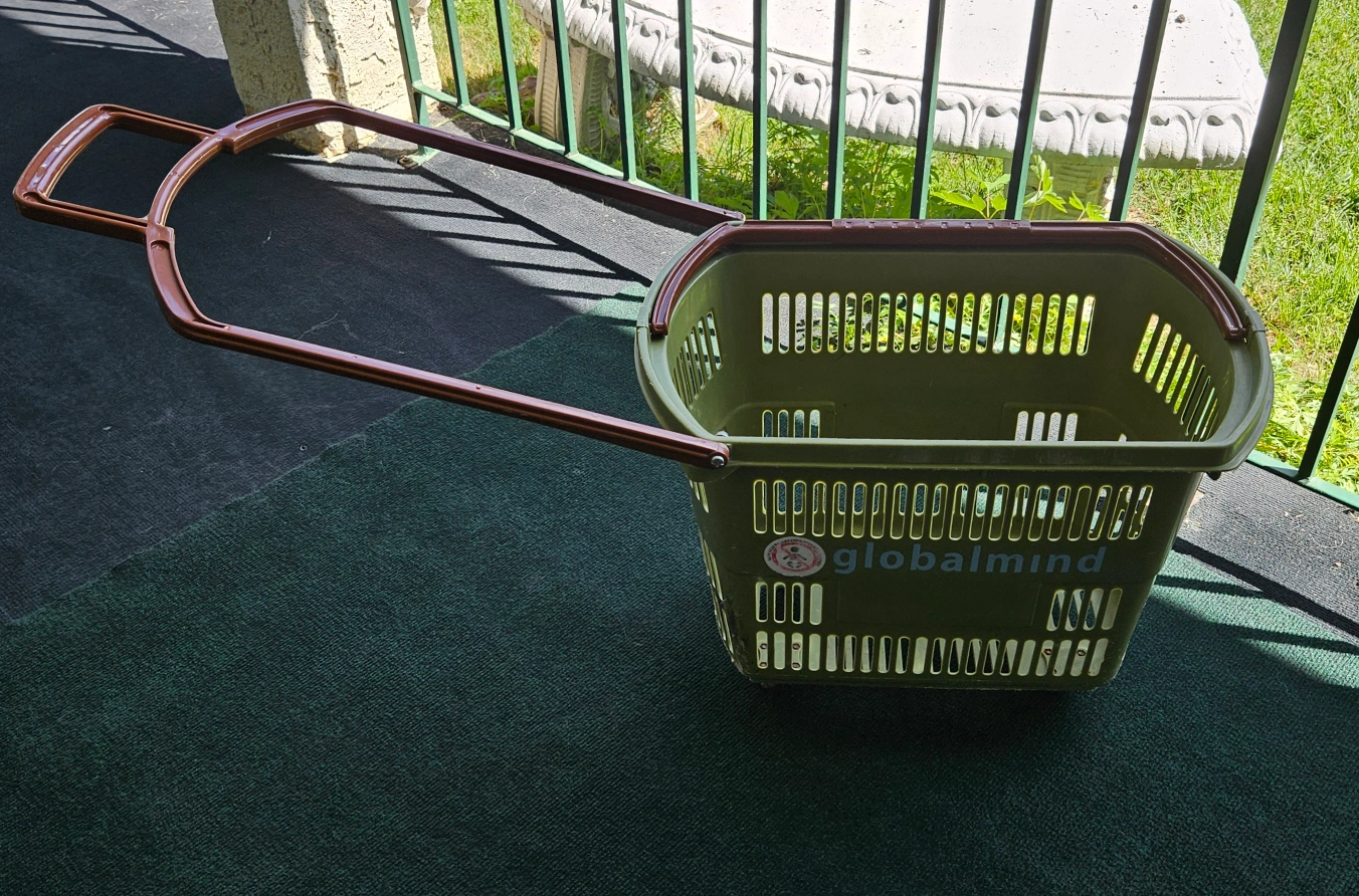Green Pull-Along Shopping Basket (w/ carrying handle)