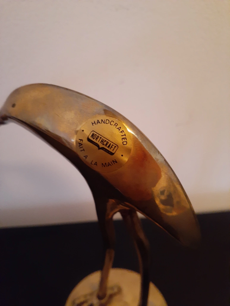 Available! This is a lovely handcrafted brass bird figurine from Northcraft. Little oxidation due to age. About 6" tall. Cash and Pickup at Willowdale Middle school 225 Senlac rd OR North York center station/ Empress Walk. 👉If you tap I am interested in buying, send your availability and which location for pickup as well.