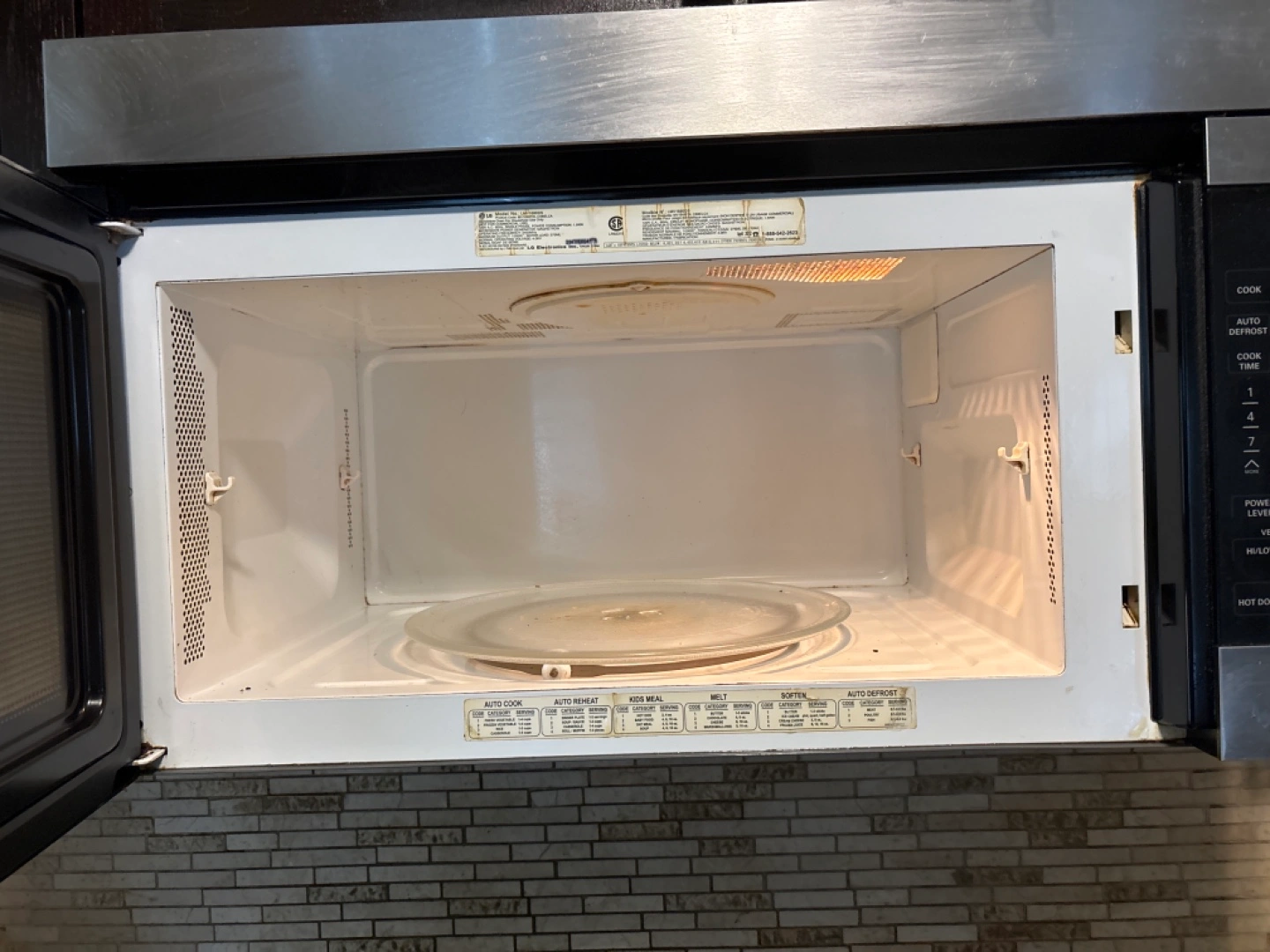 Selling an LG stainless steel over-the-range microwave. It’s in good working condition and ready to heat up your meals! It’s perfect for saving counter space in your kitchen.