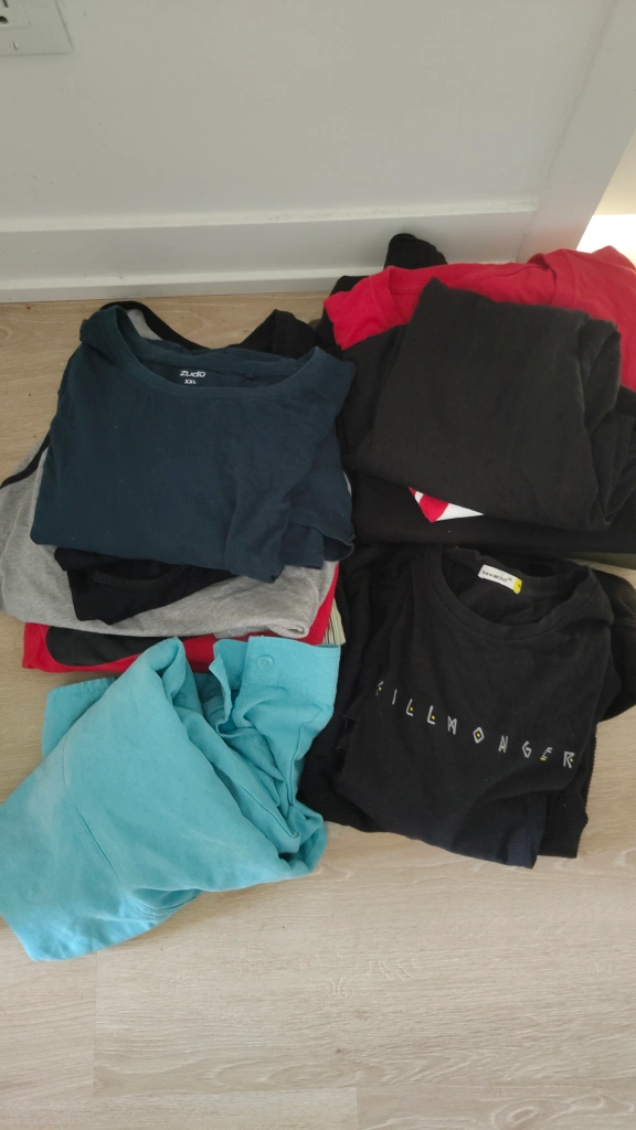 All in good used condition. Sizes Large to X-Large. Great for casual wear or gym.
