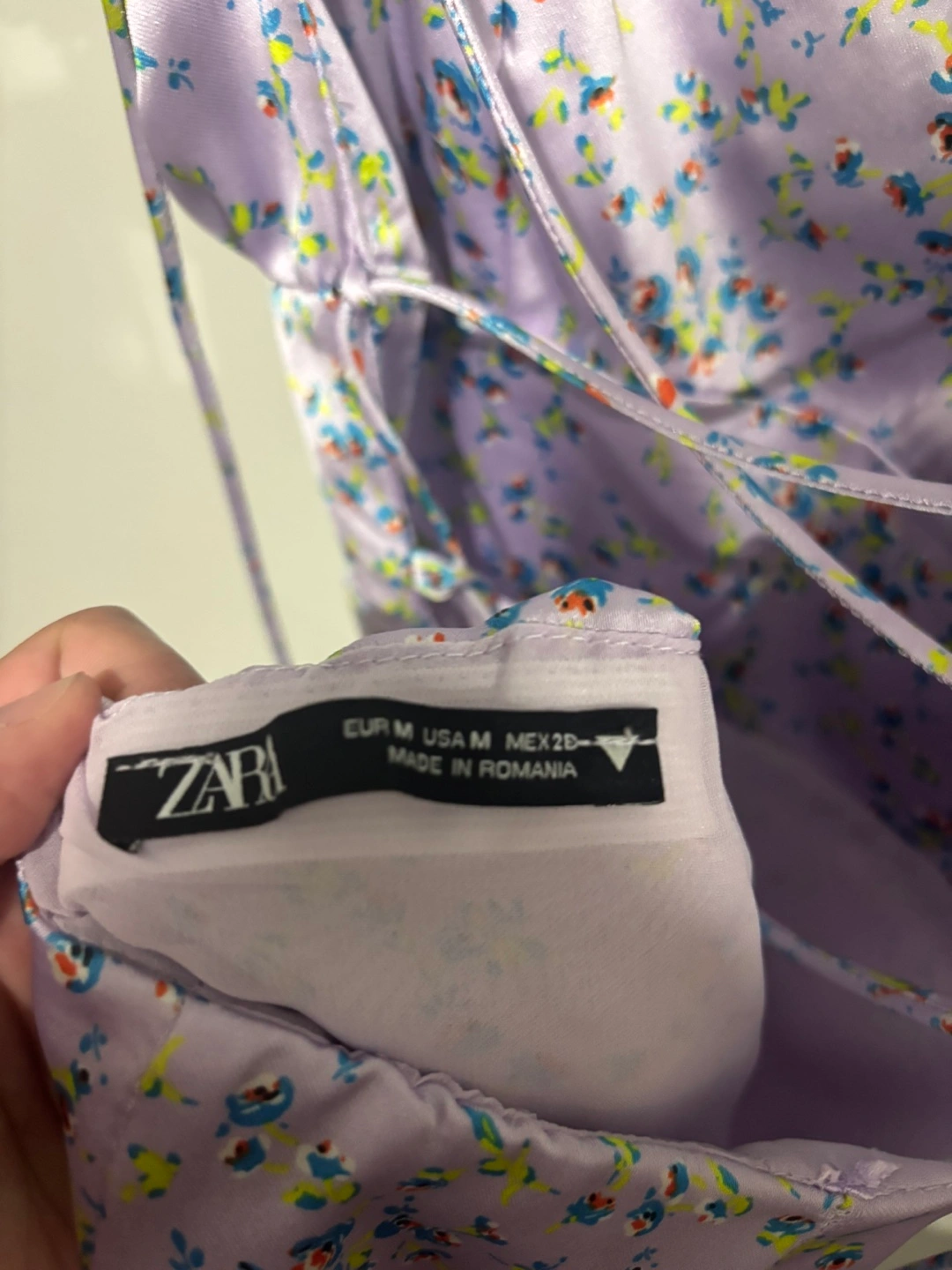 Selling a cute Zara floral mini dress in size medium! It's a lovely lilac colour with a fun floral pattern. Ties at the back and also has a zipper. Dress worn once.