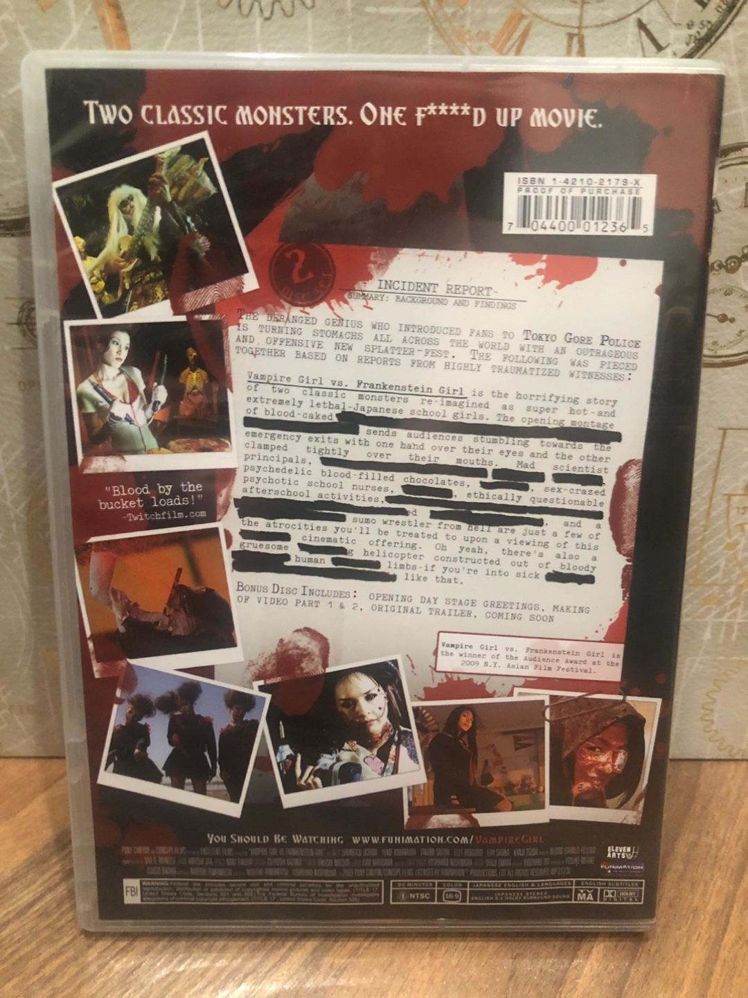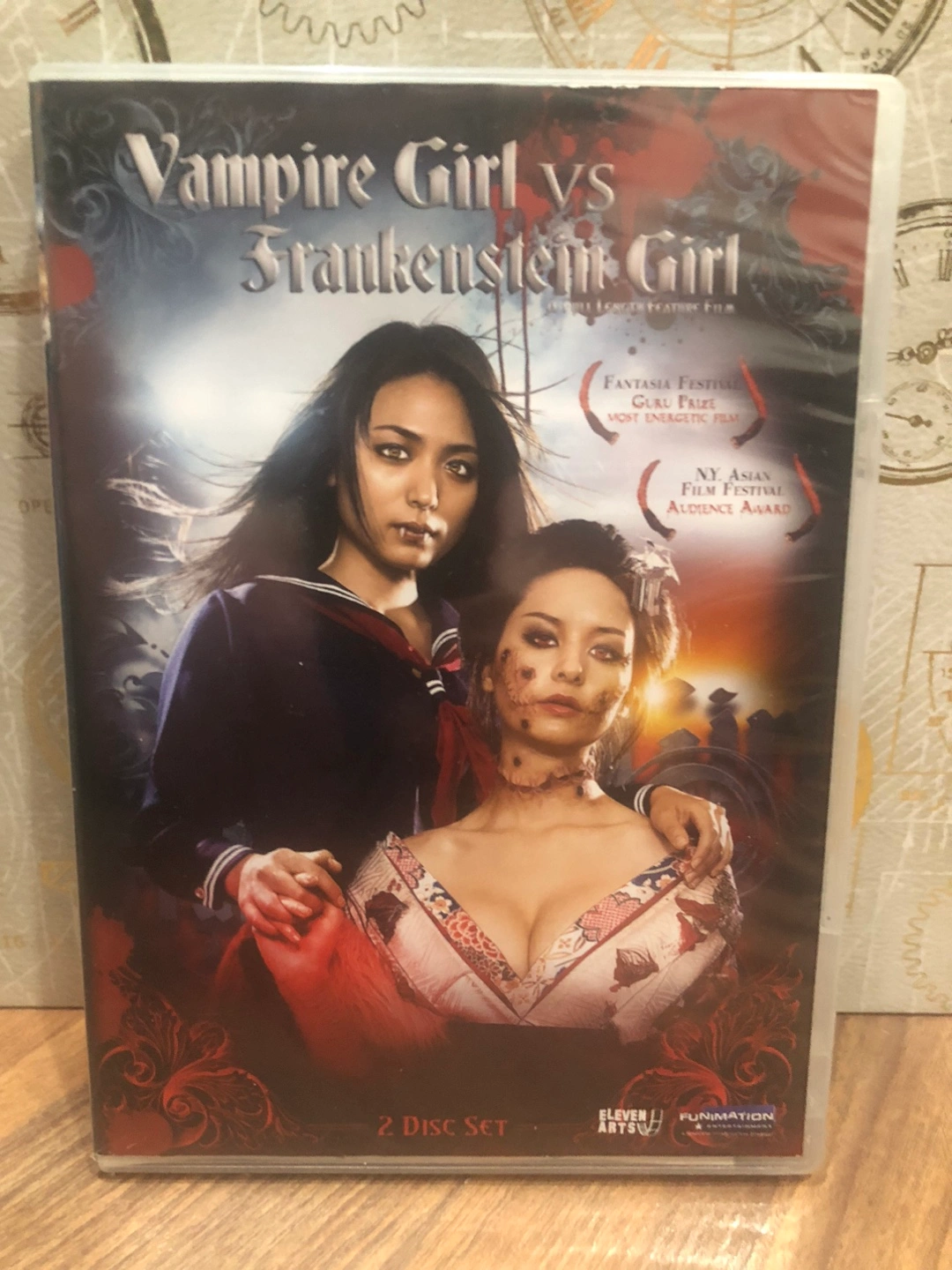 Selling a 2-disc set of "Vampire Girl vs. Frankenstein Girl" DVD. It's a horror movie with 2 classic monsters. The DVD includes bonus disc info such as opening day stage greetings and making of video part 1 & 2, original trailer and coming soon!