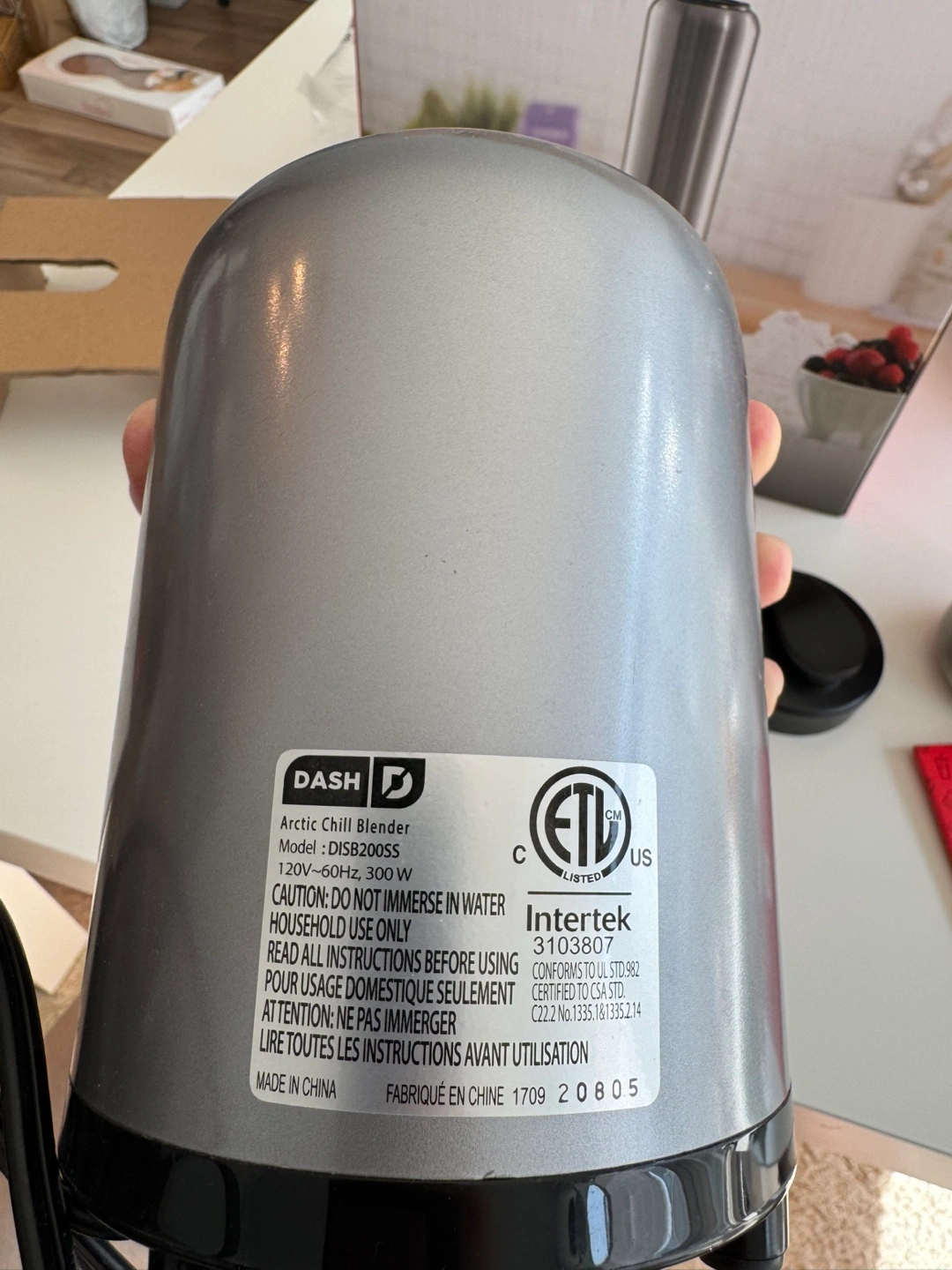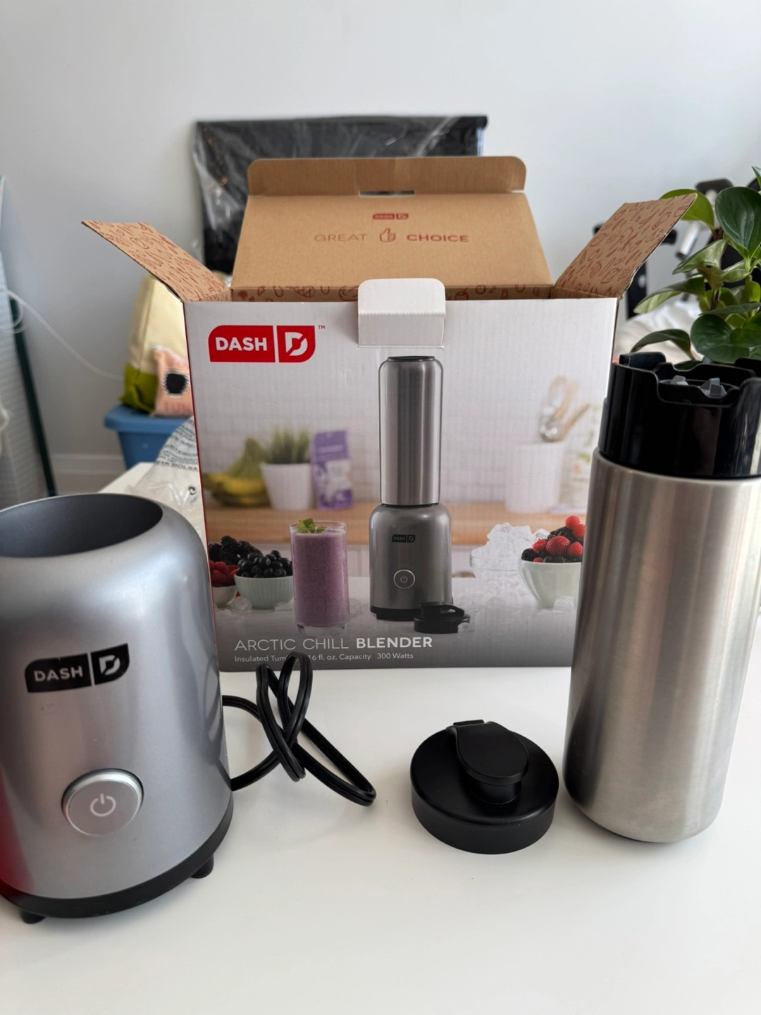 Selling a Dash Arctic Chill Blender, model DISB200SS. It comes with the box and all components! This insulated blender has a 16 fl. oz capacity, perfect for making smoothies and other chilled drinks.