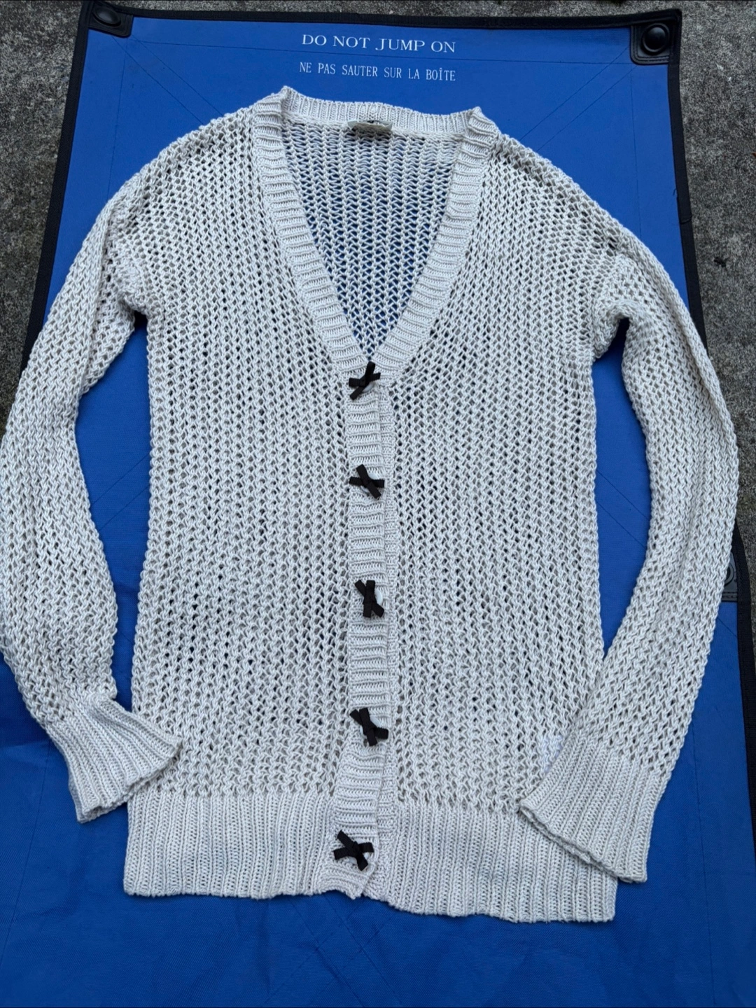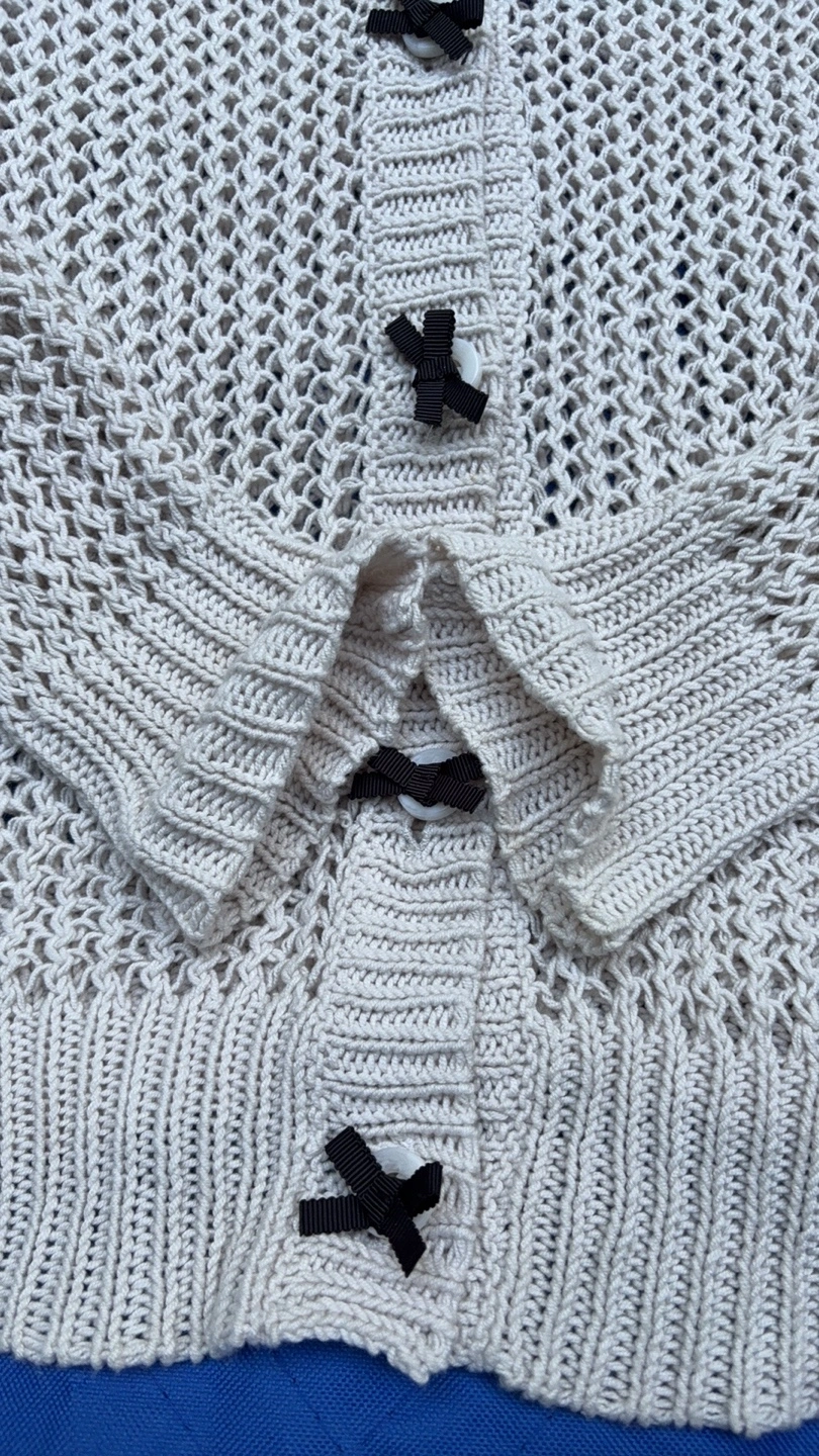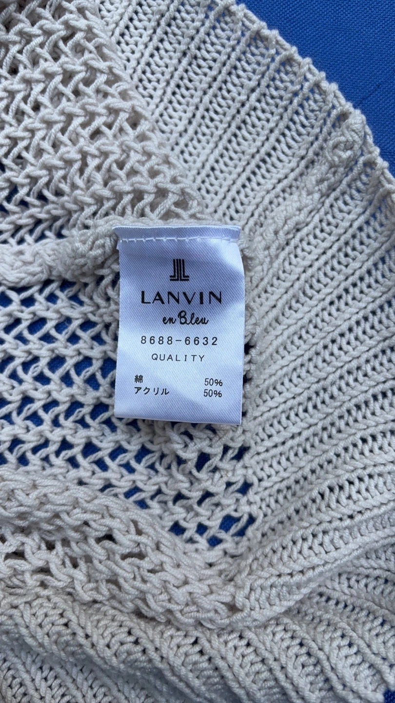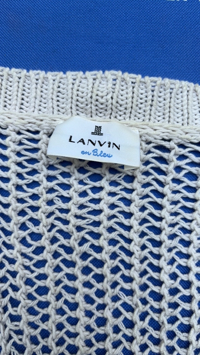 Selling a gently used Lanvin en Bleu knit cardigan. It's a beautiful piece with unique detailing. The cardigan features a delicate knit pattern and cute ribbon accents. Perfect for layering or wearing on its own!