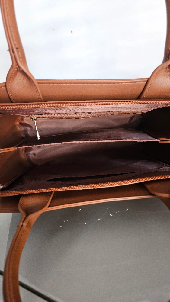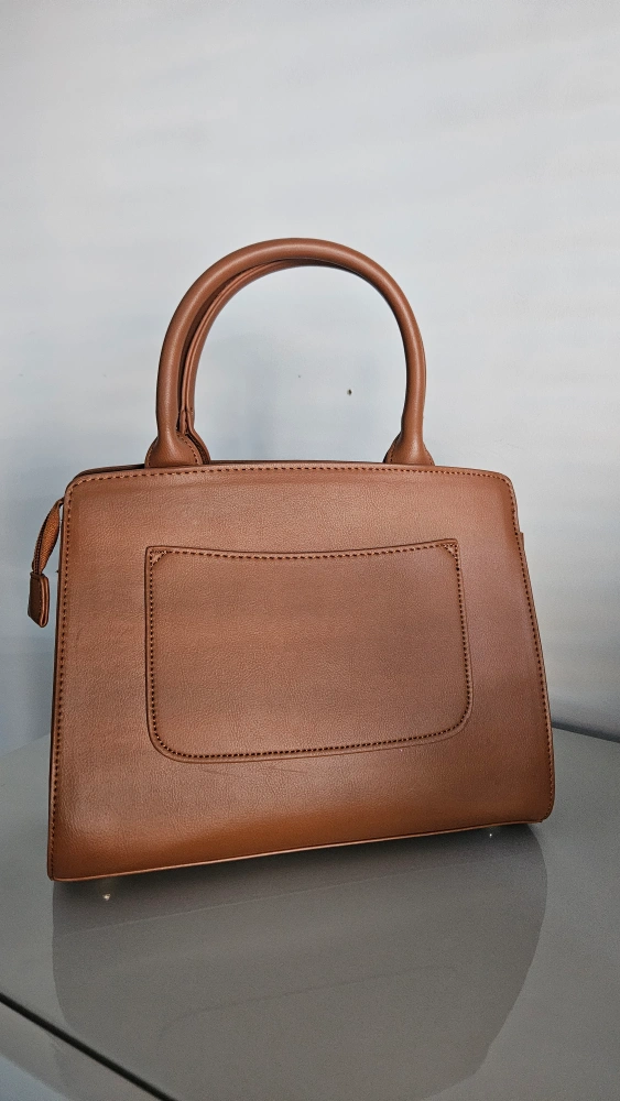 Unused medium-sized faux leather handbag. 2 compartments and 2 interior pockets, one with a zip and one without. Shoulder strap included, see last picture.