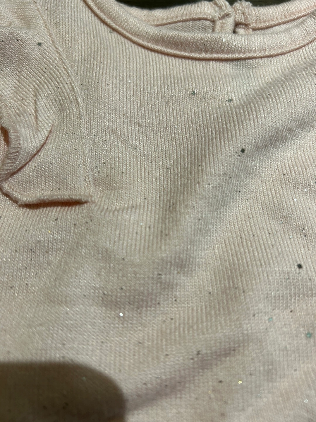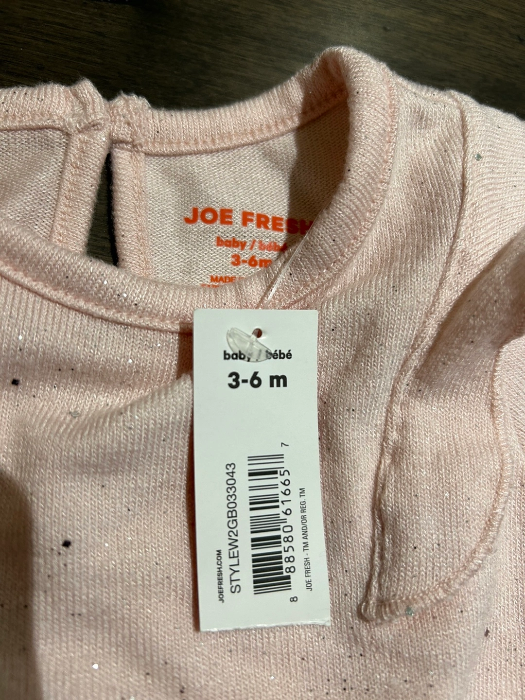 This adorable baby top from Joe Fresh is in great condition! It's a soft pink colour with subtle glitter accents. Size is 3-6 months, perfect for your little one