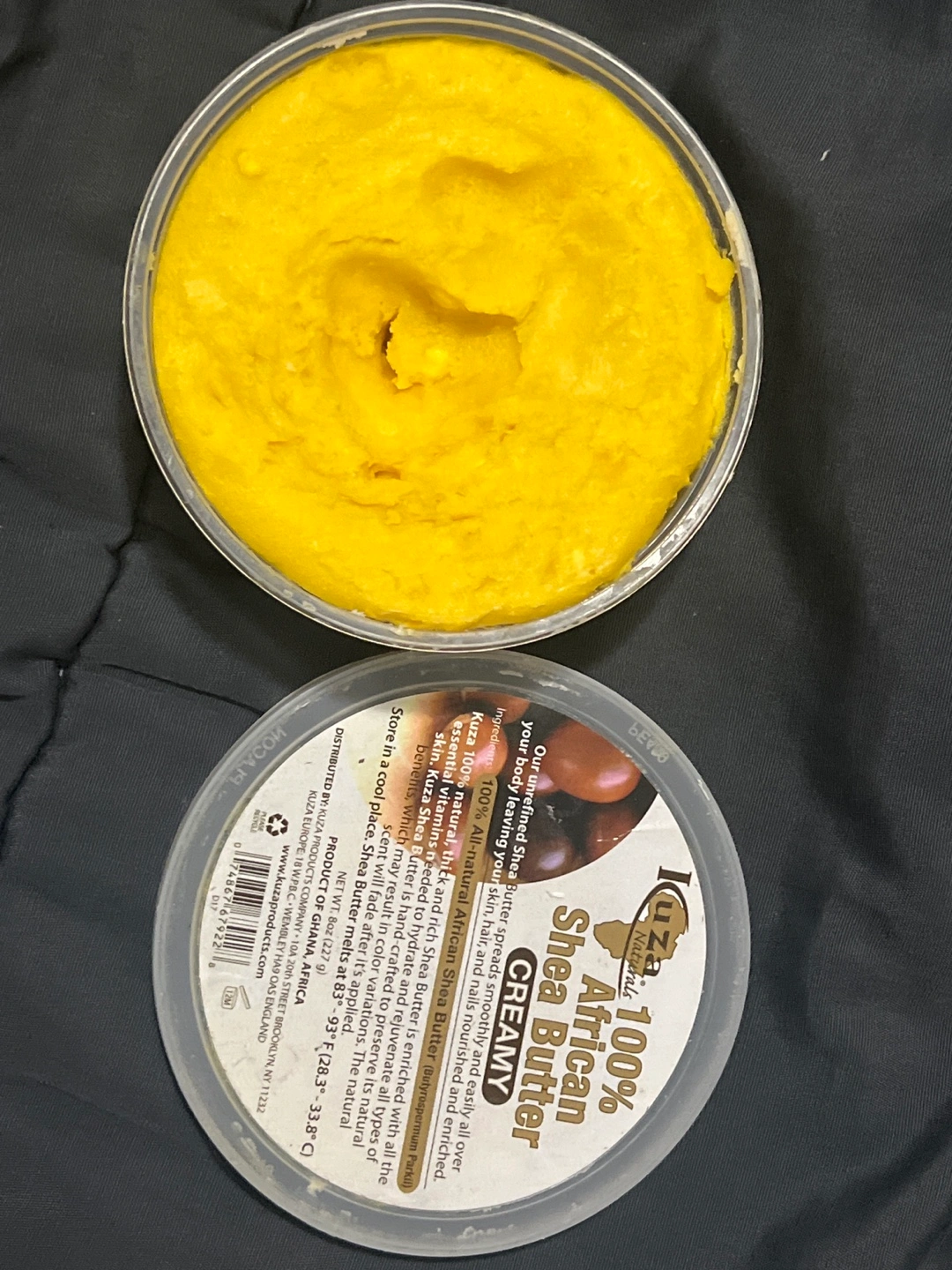 I'm selling a tub of Kuza Naturals 100% African Shea Butter, creamy version! It's perfect for moisturizing your skin, hair, and nails. This shea butter is enriched with all the essential vitamins your body needs, leaving your skin feeling rejuvenated and nourished
