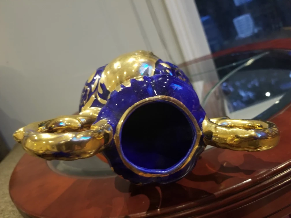 Decorative Vase: Gold & Blue, 12" Tall