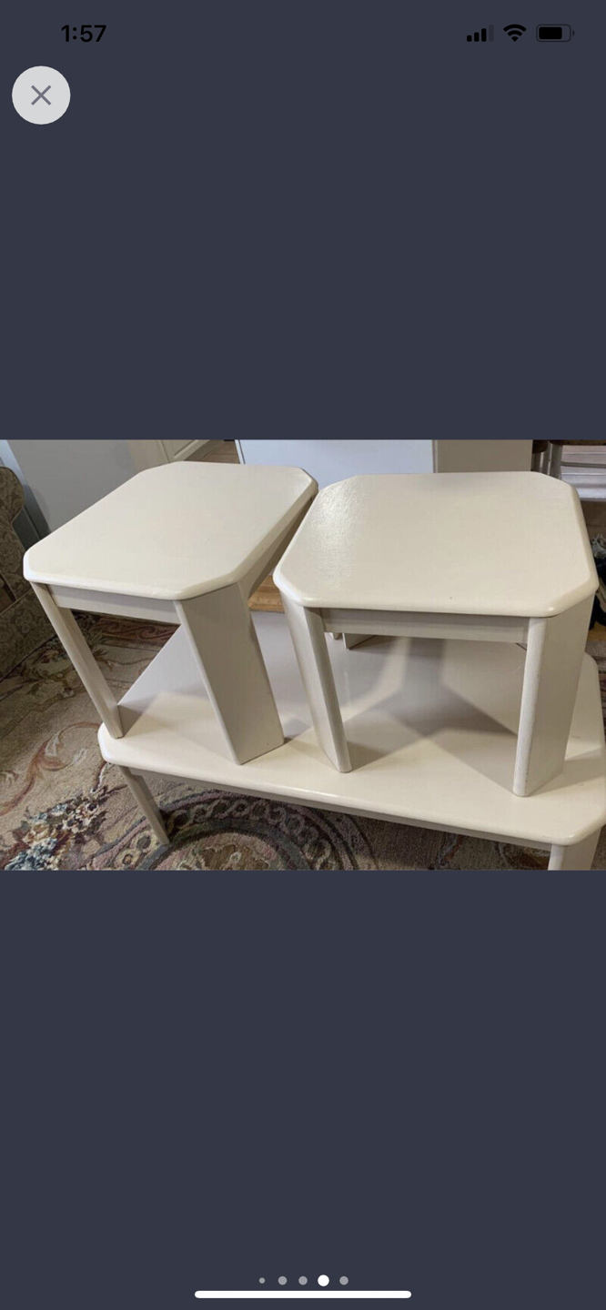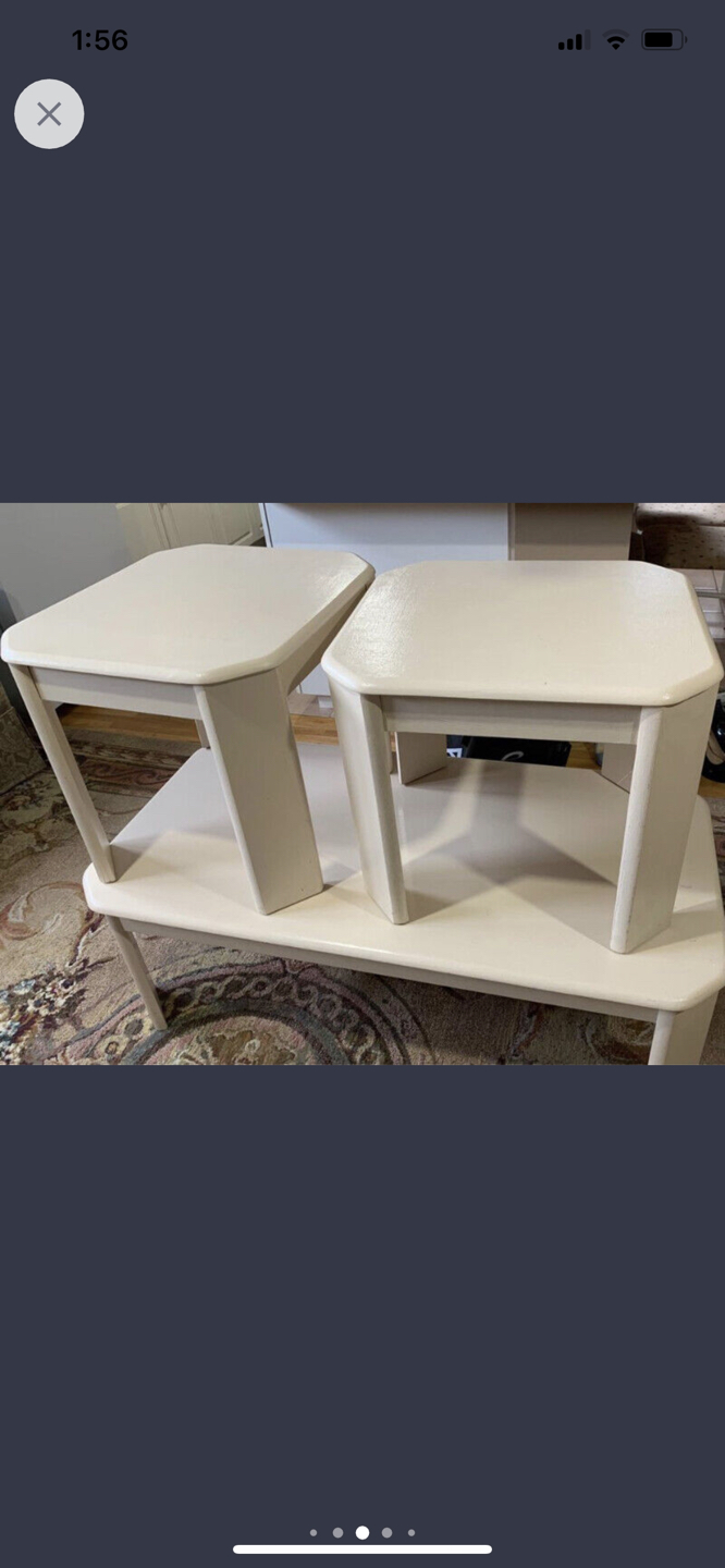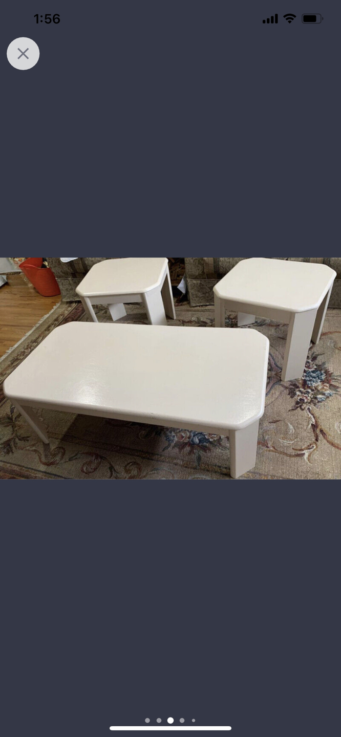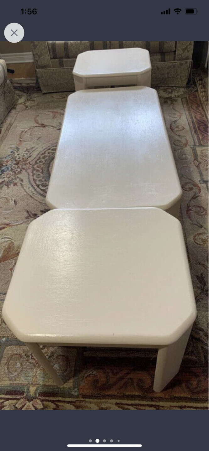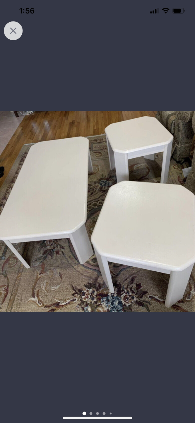 25Coffee Tables are in good condition. The measurement for the big one is: Length: 4ft ( 48 inches) Width: 2ft ( 24 inches) Height : 16 inches The measurement for the other two tablets is: Length: 22 inches Width: 20 inches Height: 19 inches All three pieces are in great condition. A home free of smoke, pets. Pick up only from Scarborough