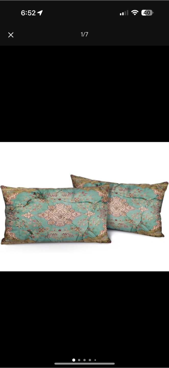 Here's a set of two decorative pillow cases . They have a unique design with a turquoise background and a central floral pattern. These pillows would be a great addition to your living room or bedroom decor, no Insert