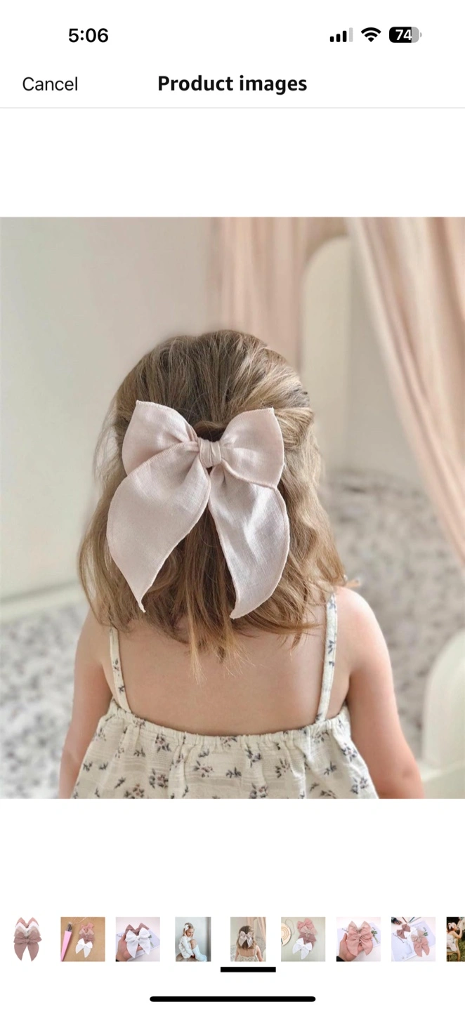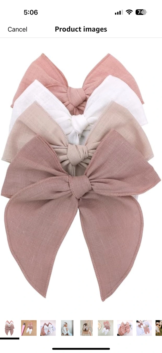 Here's a set of four adorable linen hair bows for your little one! They come in a lovely assortment of colours: white, light brown, and two shades of pink. These bows are perfect for adding a sweet touch to any outfit