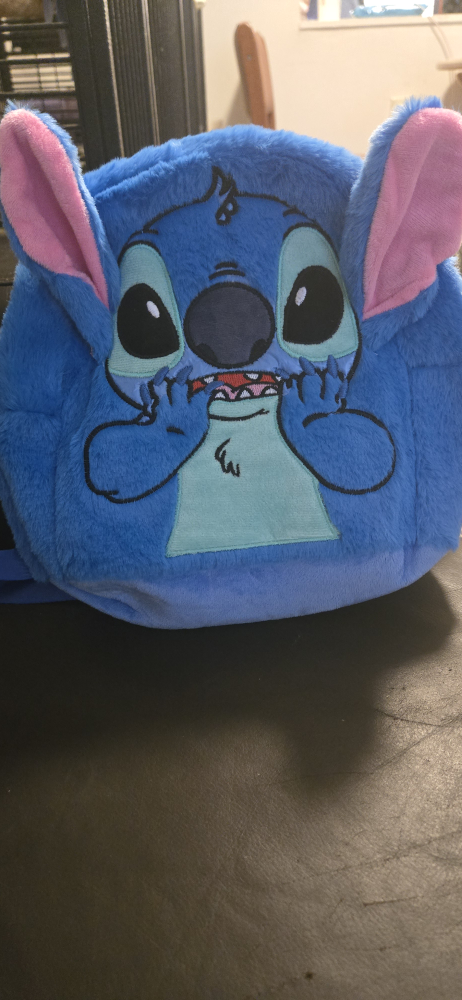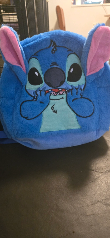 Check out this adorable Stitch plush backpack! It's in great condition and perfect for any Disney lover. The backpack is a vibrant blue with pink ears, capturing Stitch's playful personality perfectly