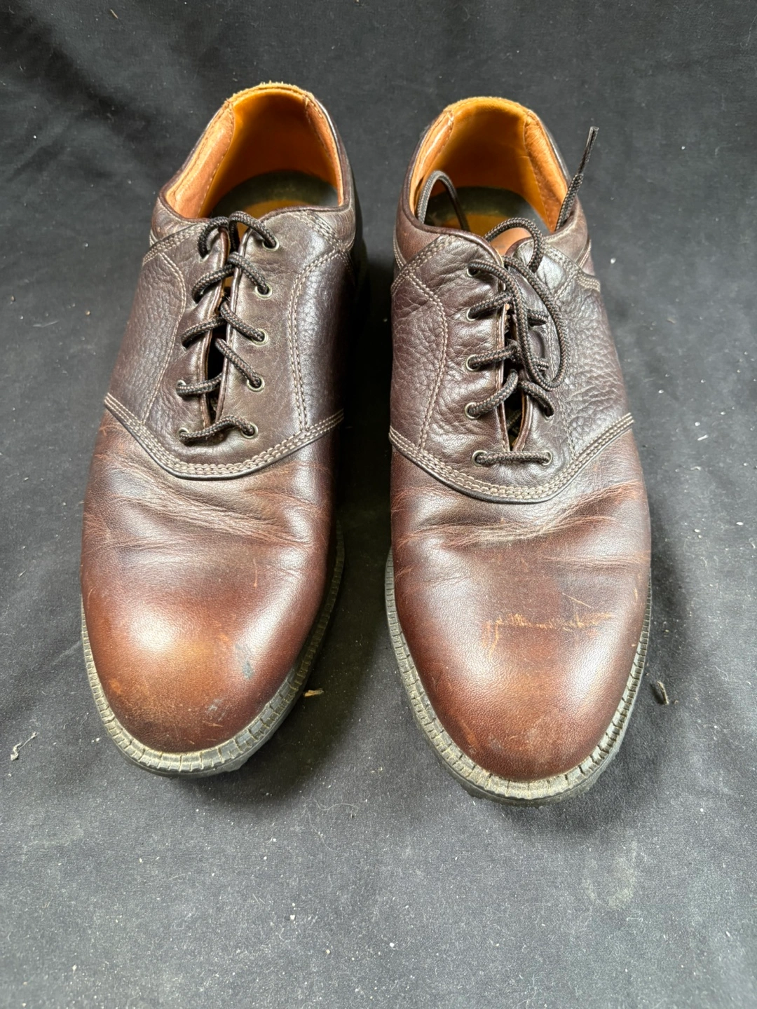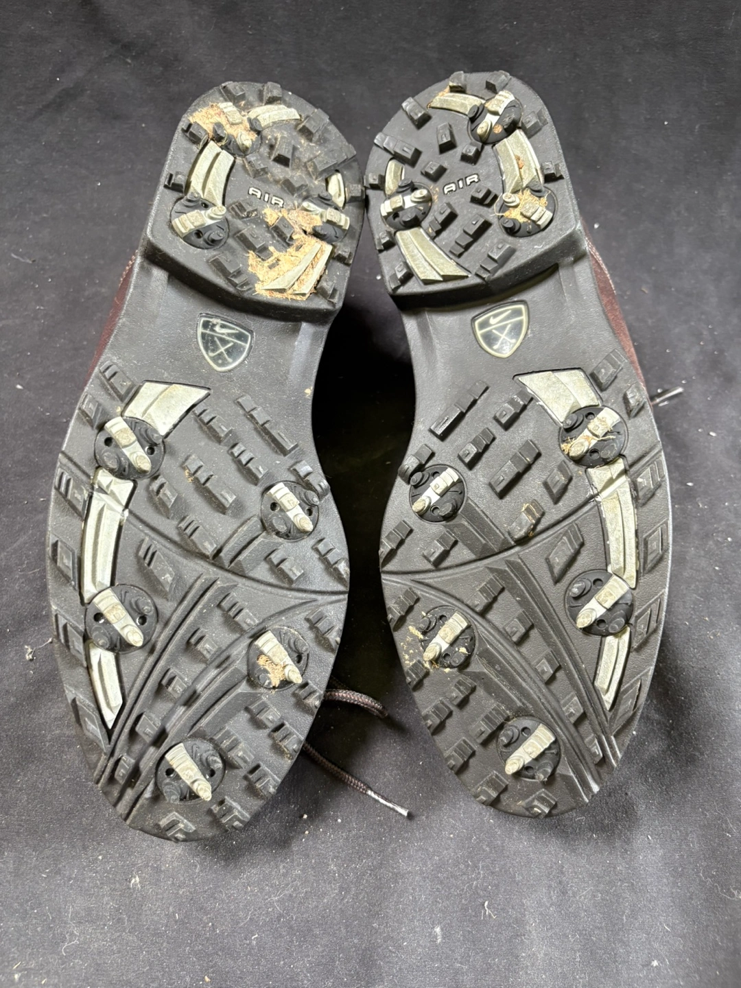 good condition Nike Golf Leather Shoes - Size 8 US Selling a pair of Nike Golf leather shoes in brown. They're a size 8 US and made in Thailand. The shoes show some signs of wear, but they're still in good condition for hitting the green!