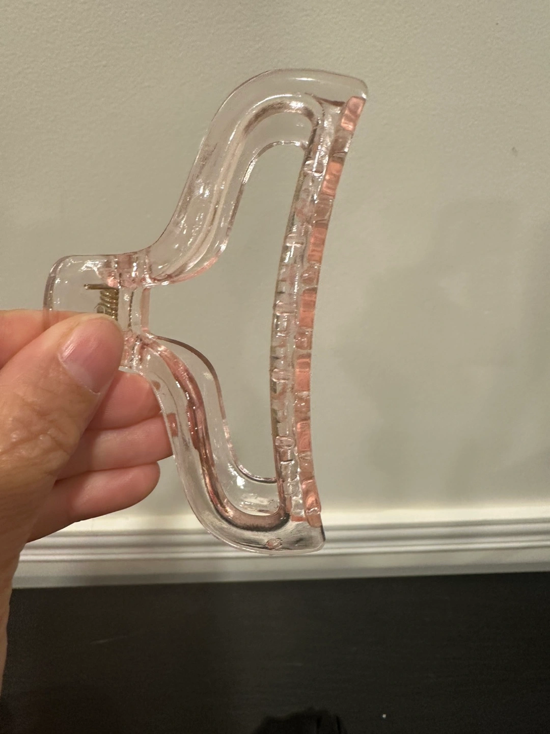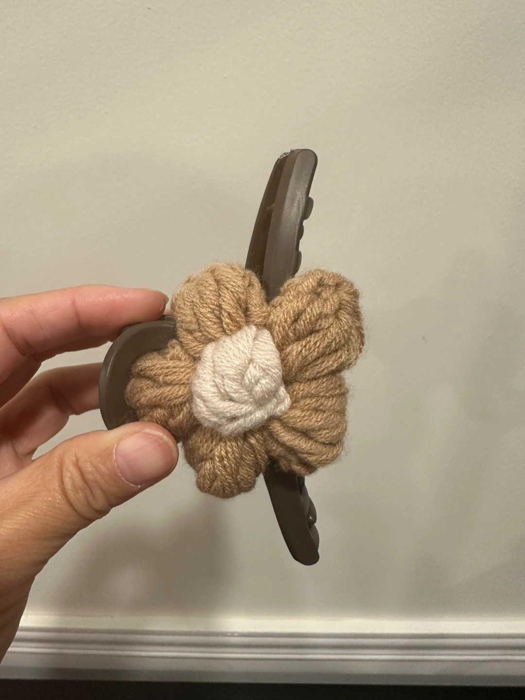 Selling a variety of hair claw clips. There's a brown flower clip, a clear pink clip, a black bow clip, and a lily clip. They're all in great condition!