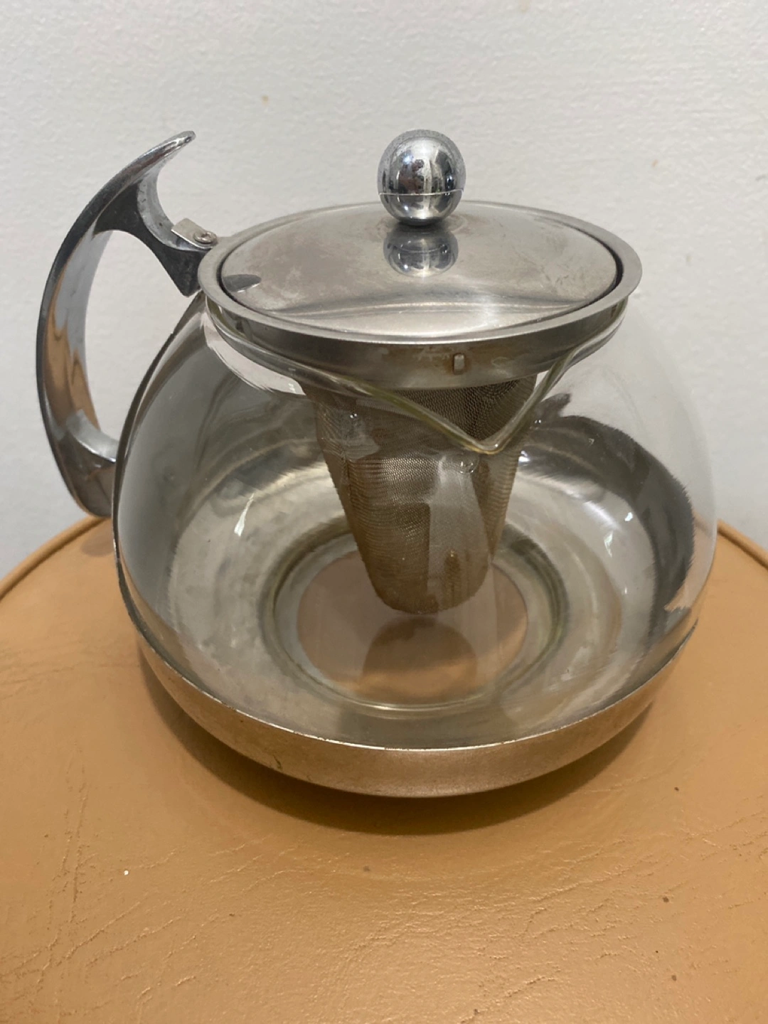 Selling a clear glass teapot with a stainless steel infuser! It's perfect for brewing loose leaf tea and looks great on any table. The stainless steel components add a touch of elegance and durability to this teapot.