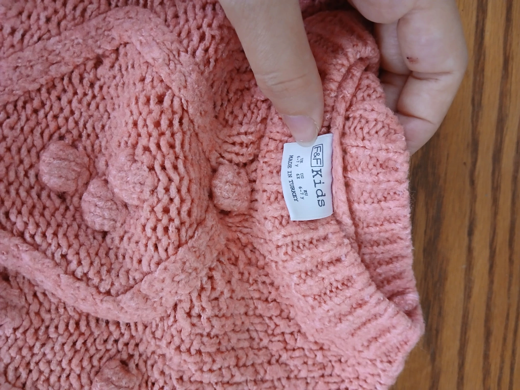 A cozy pink knit sweater from F&F Kids! This sweater is in great condition and is sized for 2-3 year olds. It's perfect for keeping your little one warm and stylish. Made in Turkey 🇹🇷