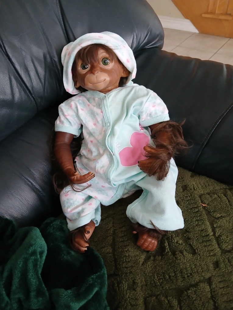 Selling a cute reborn monkey doll. It comes with a sweet little outfit, perfect for cuddling and playtime! The doll is in great condition and ready for a new home.