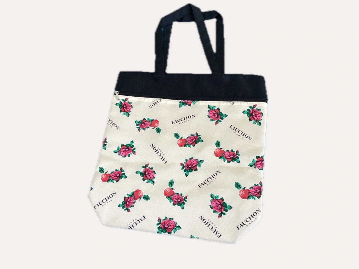 Here's a cute tote bag from Fauchon Paris! It features a lovely floral and apple design. Perfect for shopping or carrying your everyday essentials!