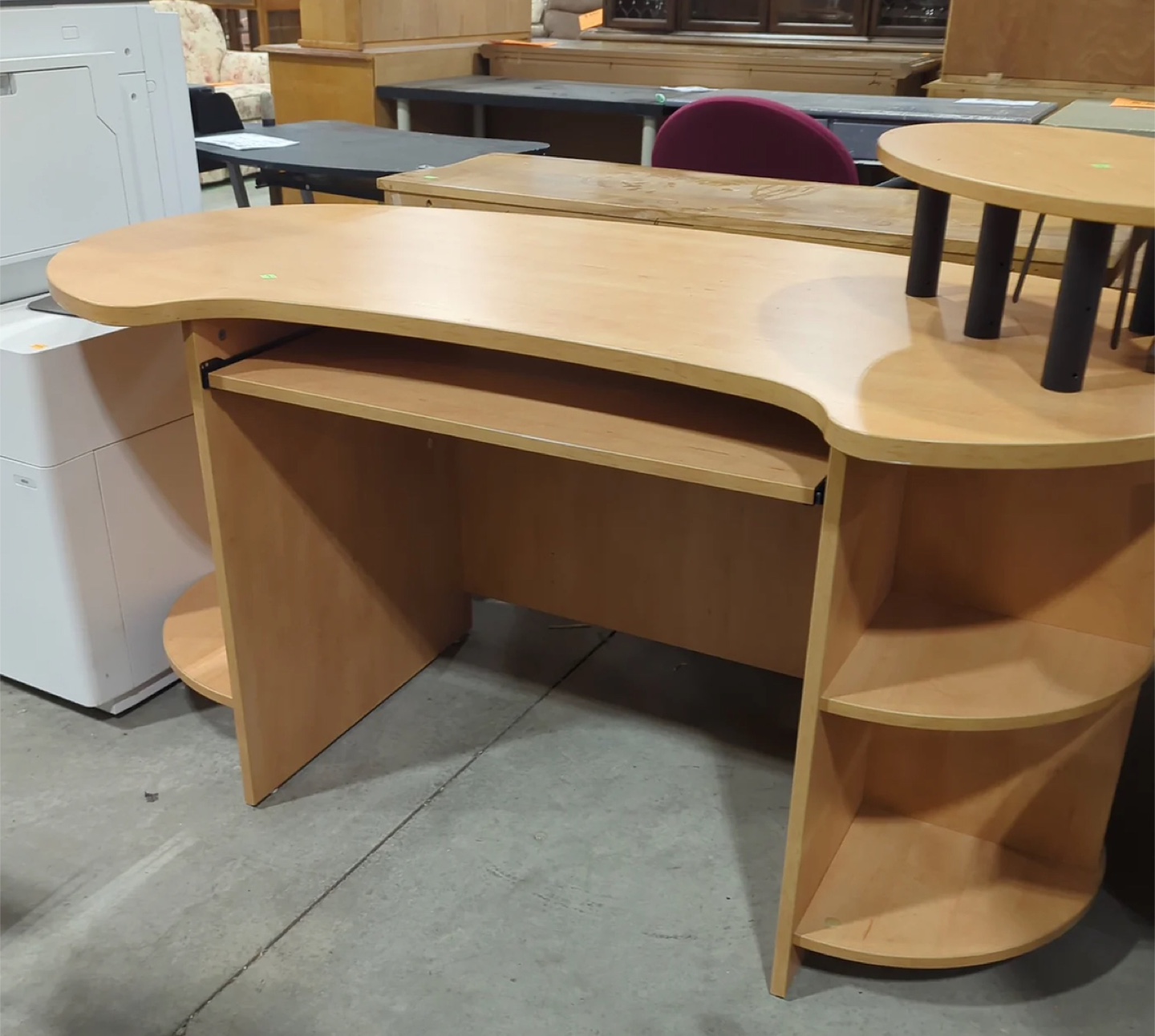 Selling a wooden computer desk that's perfect for a home office or study space! It features a keyboard tray and convenient shelves for storage