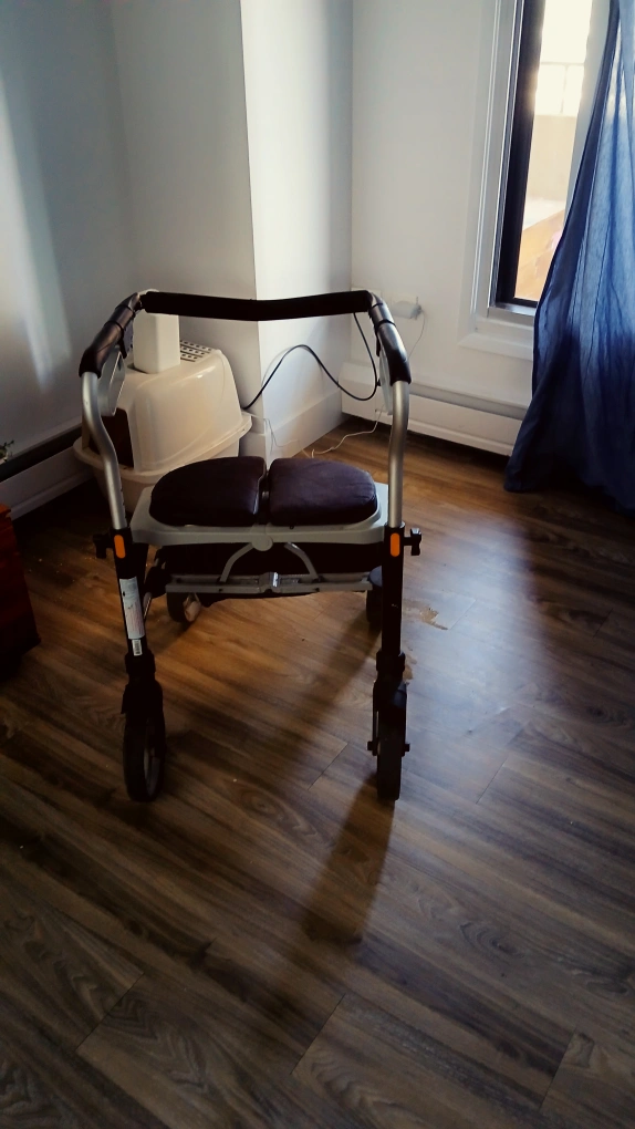 Selling a rollator walker, perfect for anyone needing a little extra support. It comes with a seat so you can take a break whenever you need to, and a basket for carrying your essentials, hand breaks and ajustable handle bars for height, 300lb weight capasity max. Also folds for better storage. It's in good condition and ready to go!