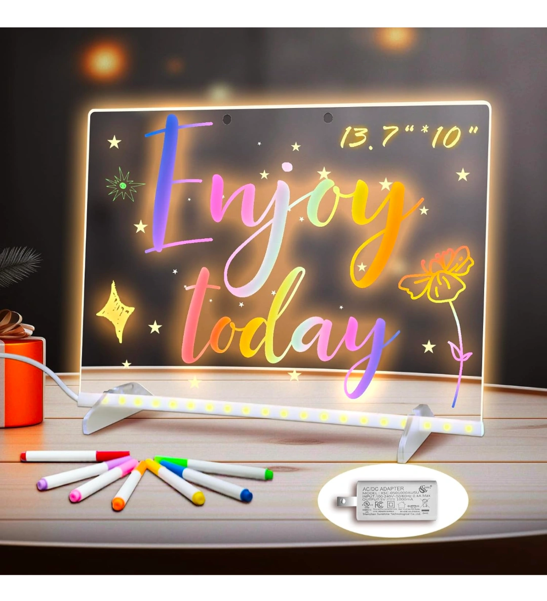 This LED writing board is perfect for leaving messages or creating art! It measures 13.7" x 10" and comes with everything you need to get started.