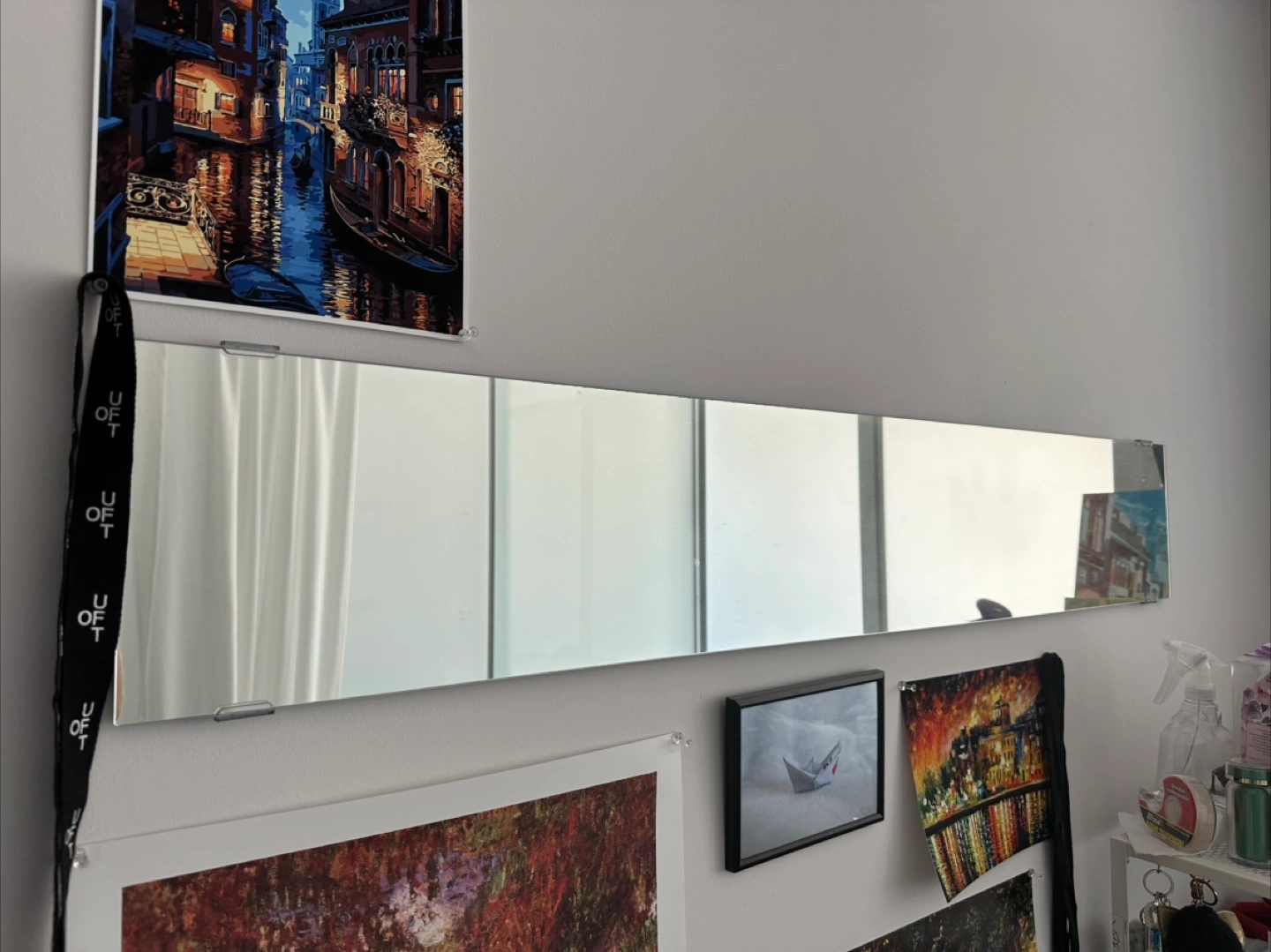 Selling a long narrow mirror! These are great for creating a larger mirror or using them separately around your space. They're easy to mount with the included wall attachment